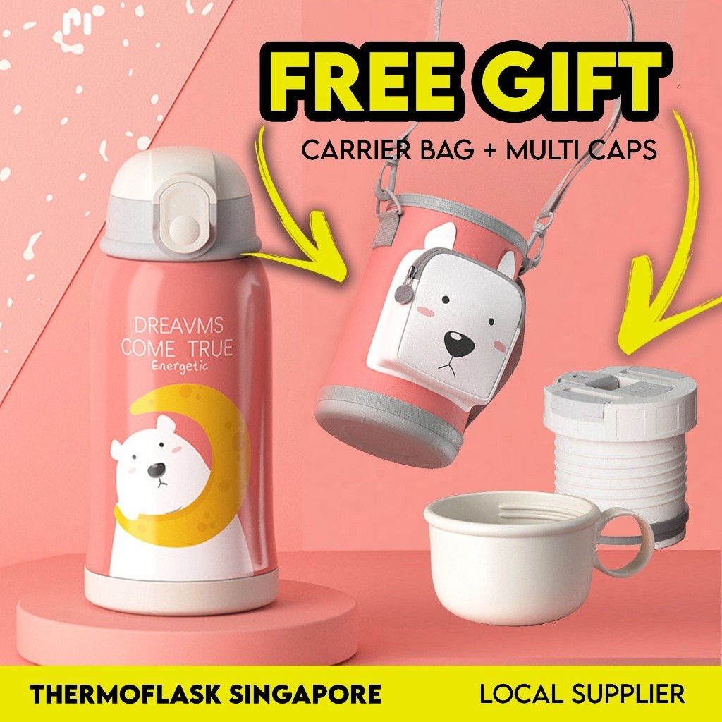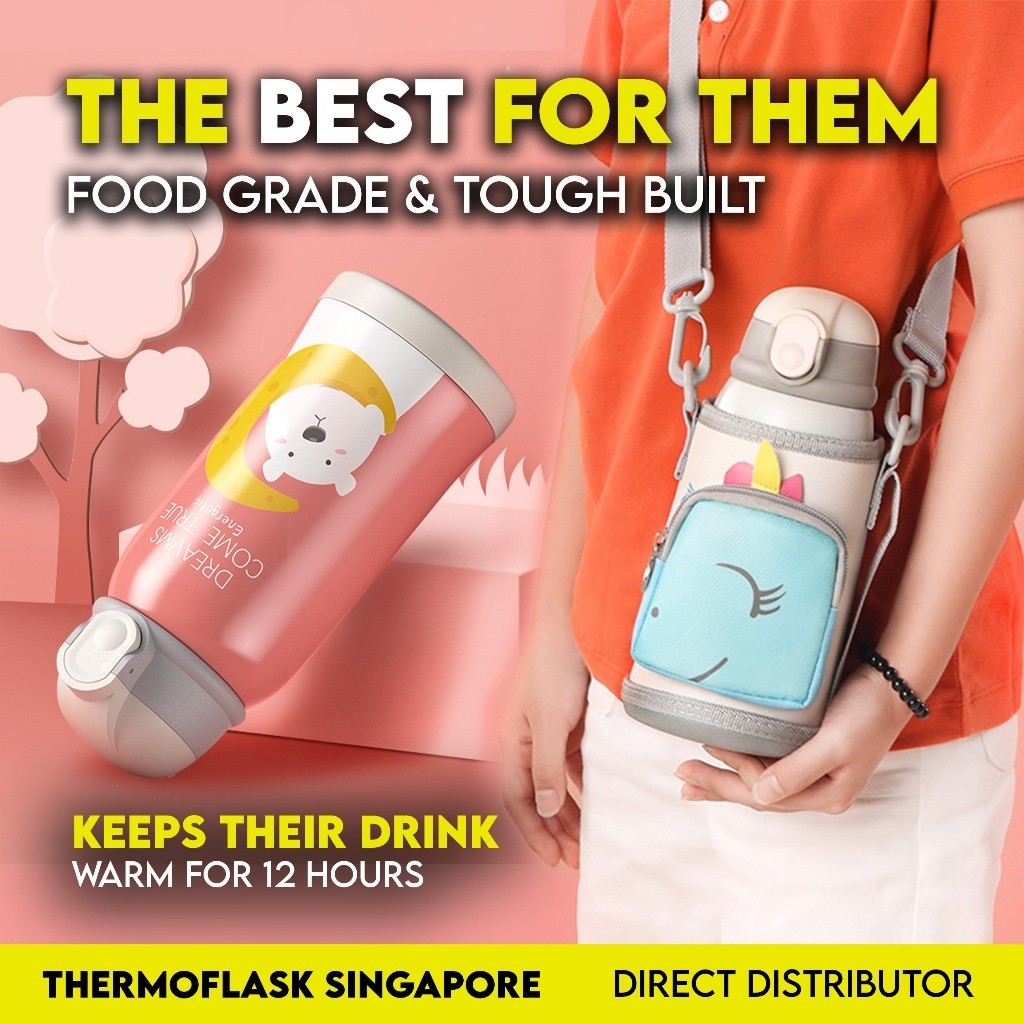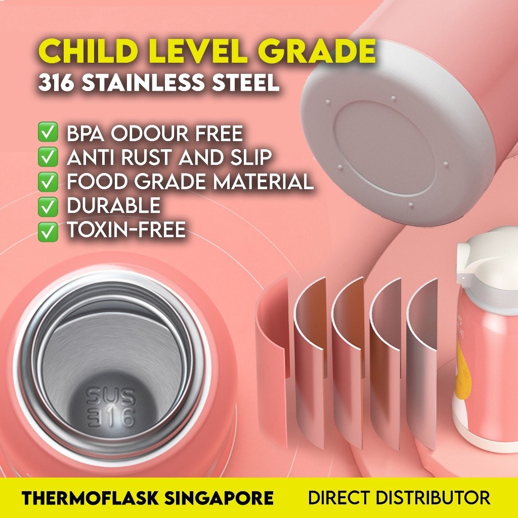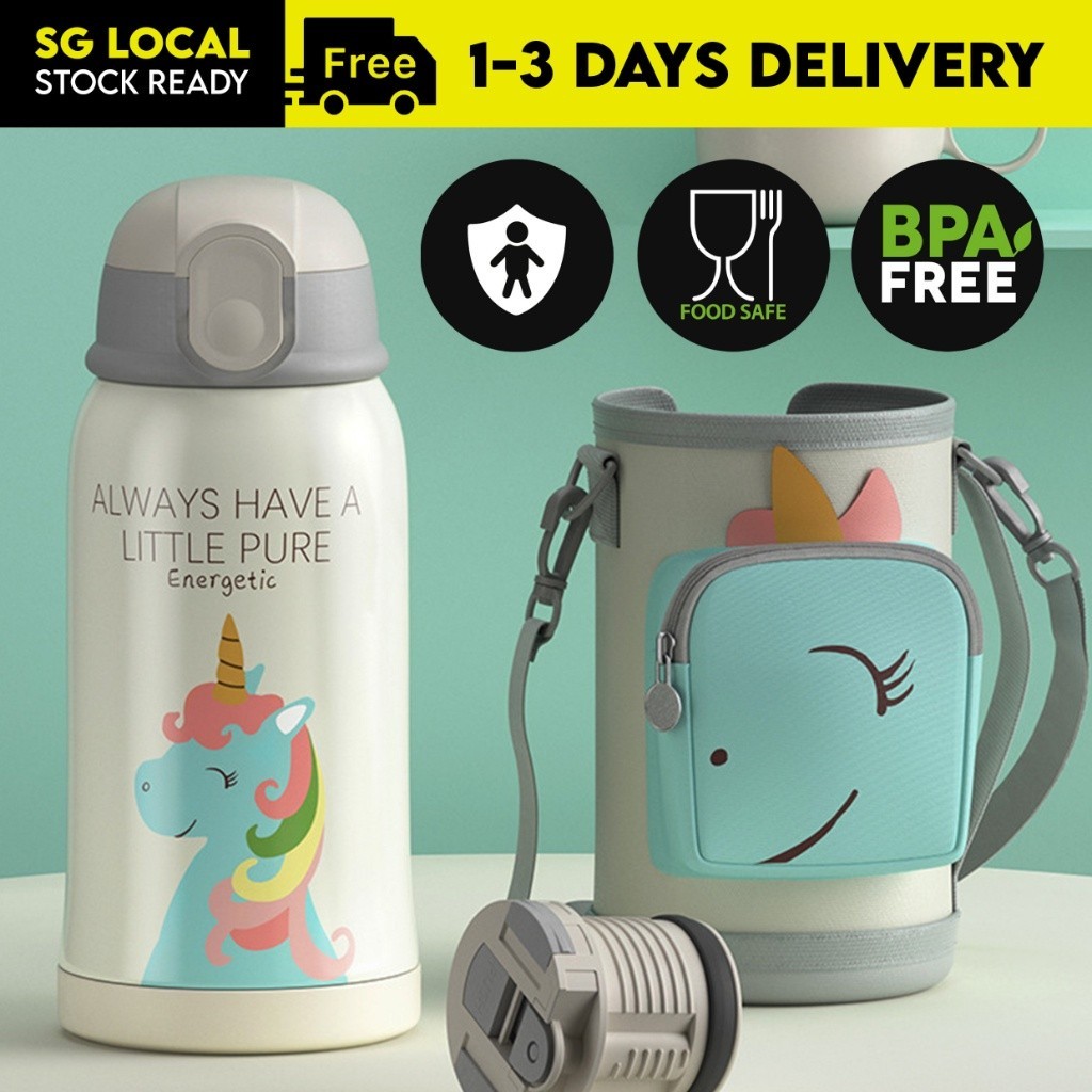 [SG STOCK] 316 Grade Thermos Kids Children Straw Water Bottle Thermal Stainless Steel Leak Proof BPA Free 550ML
