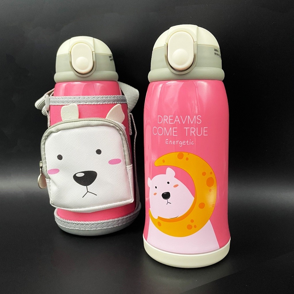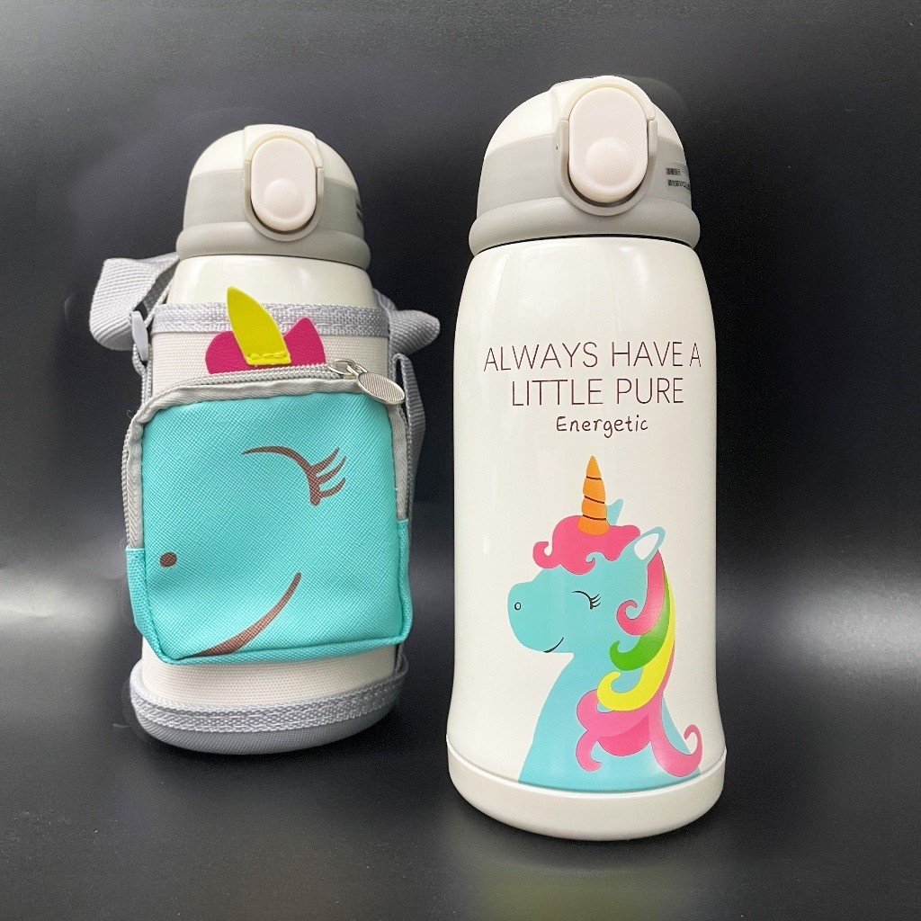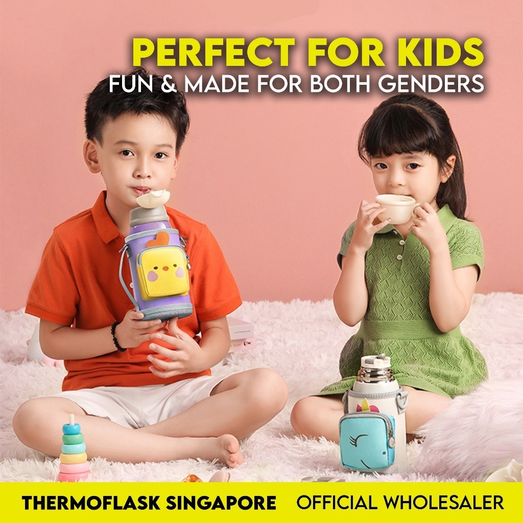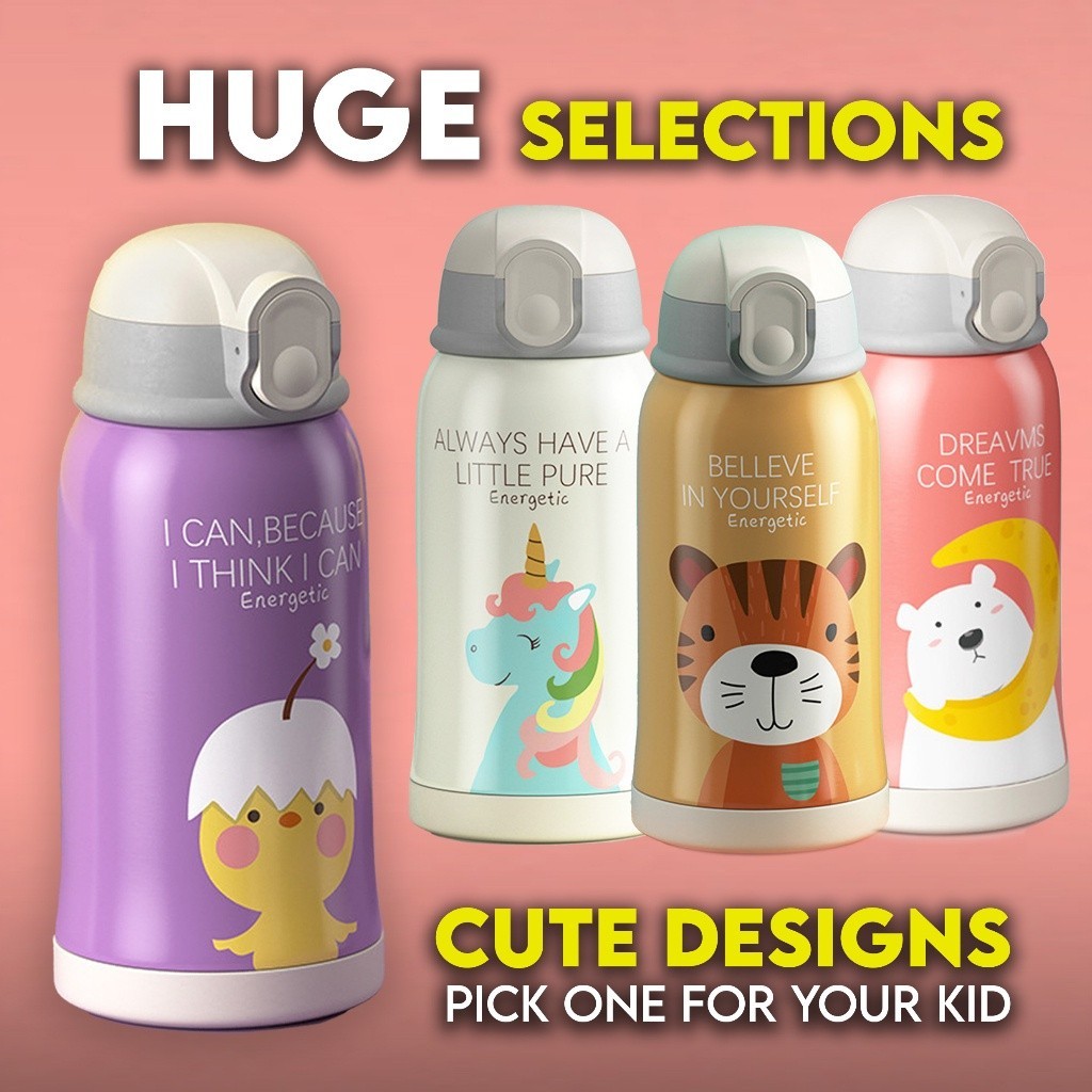 [SG STOCK] 316 Grade Thermos Kids Children Straw Water Bottle Thermal Stainless Steel Leak Proof BPA Free 550ML