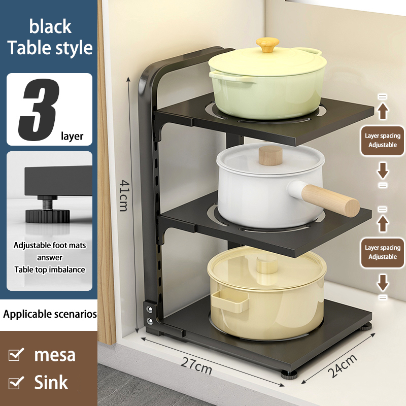 [SG STOCK] Adjustable Pot Rack Pot Organiser Under Sink Kitchen Sink Organiser Kitchen Rack Steel Kitchen Pot Holder Sink Rack