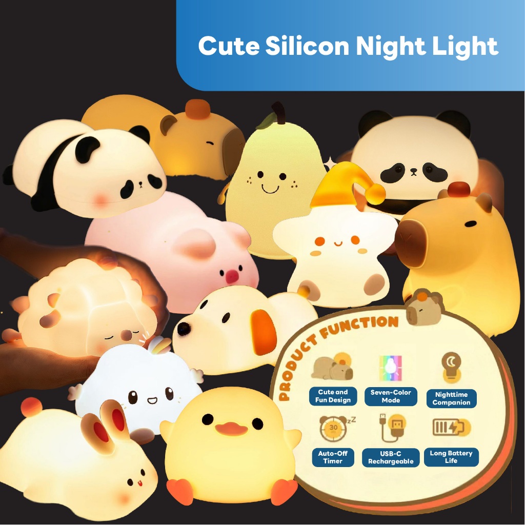 [SG STOCK] Cute LED Light Silicon Light Cute Funny Lamp Children Night Light Kids Night Lamp Rechargeable Bedside Lamp