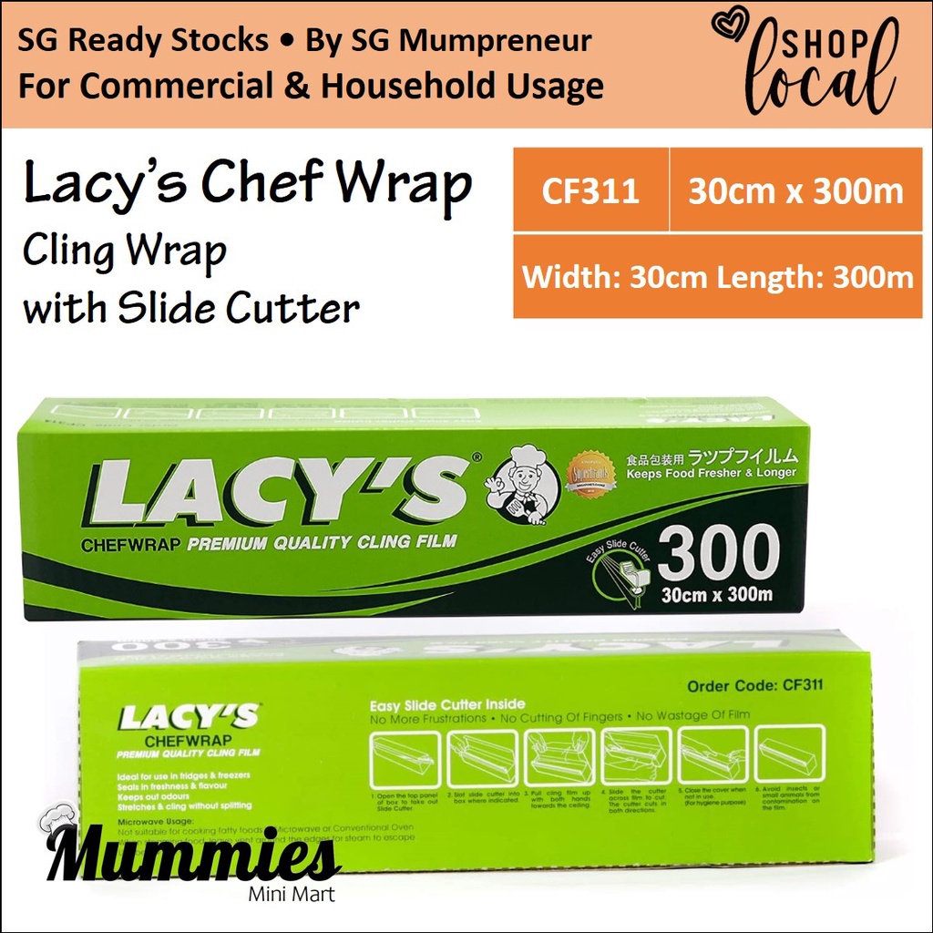 [SG STOCK] Lacy's Cling Wrap w Slide Cutter | Chef Wrap | Kitchen Food Grade Film Commercial Household CF311 CF313 CF314