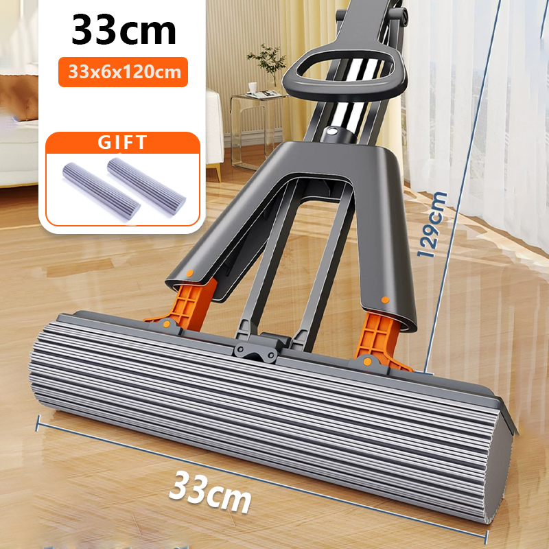 [SG STOCK]Self Wringing Sponge Mop for Floor Cleaning with 2 PVA Sponge Heads Household Wet and Dry Dual Use Lazy Floor Mop Hand Free Super Absorbent for Tile Marble Laminate Wate