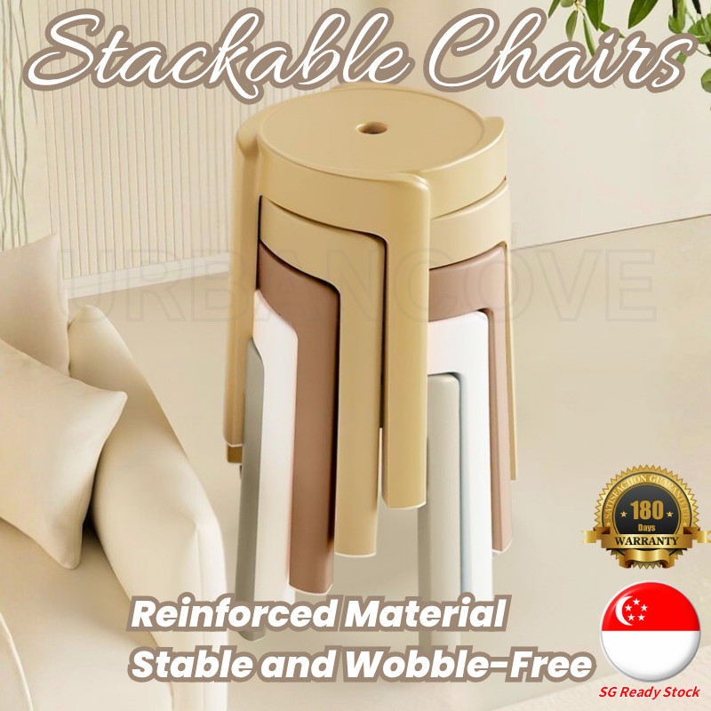 [SG STOCK]Stackable Chair Plastic Stool Modern Design Thickened PP Material Multi-Color Options Shower Step Stool
