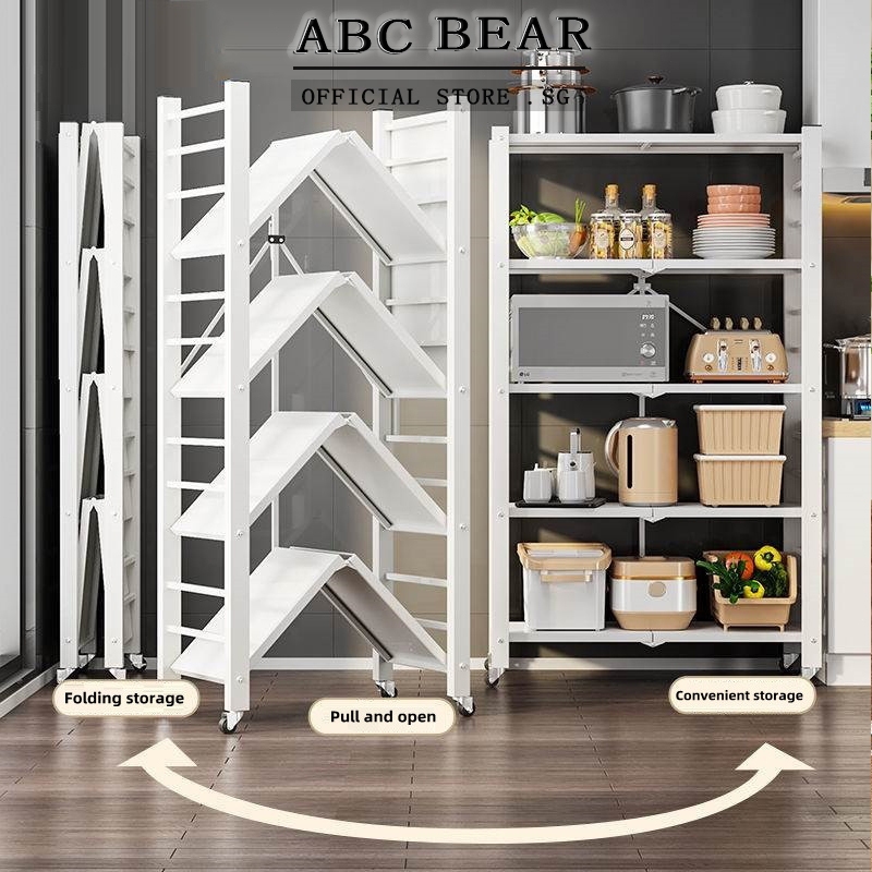 [SG STOCK] foldable kitchen storage rack 3 / 4 / 5 foldable storage rack with wheels for metal storage racks