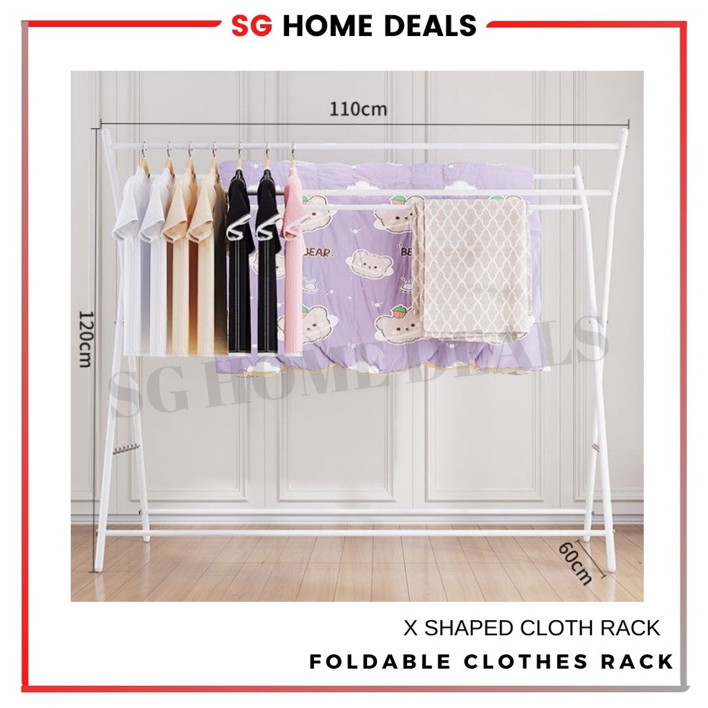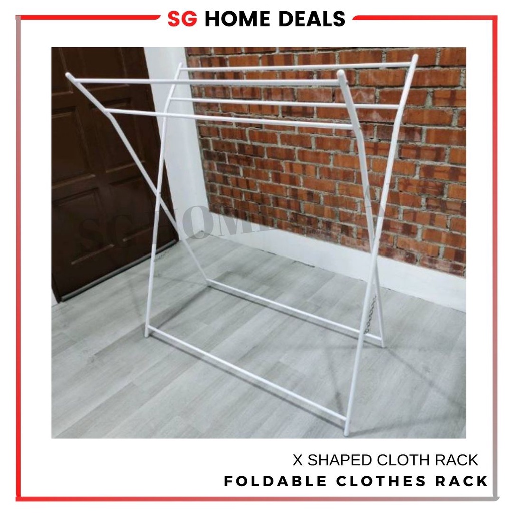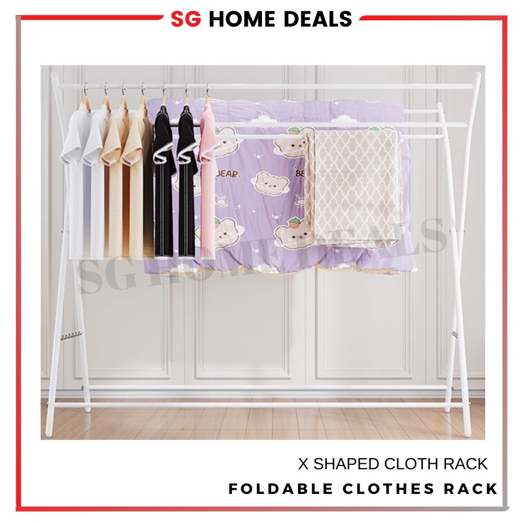 [SG STOCKS] X-Shaped Foldable Clothes Rack Drying Rack/ Suitable Indoor & Outdoor/ Easy Self Assemble