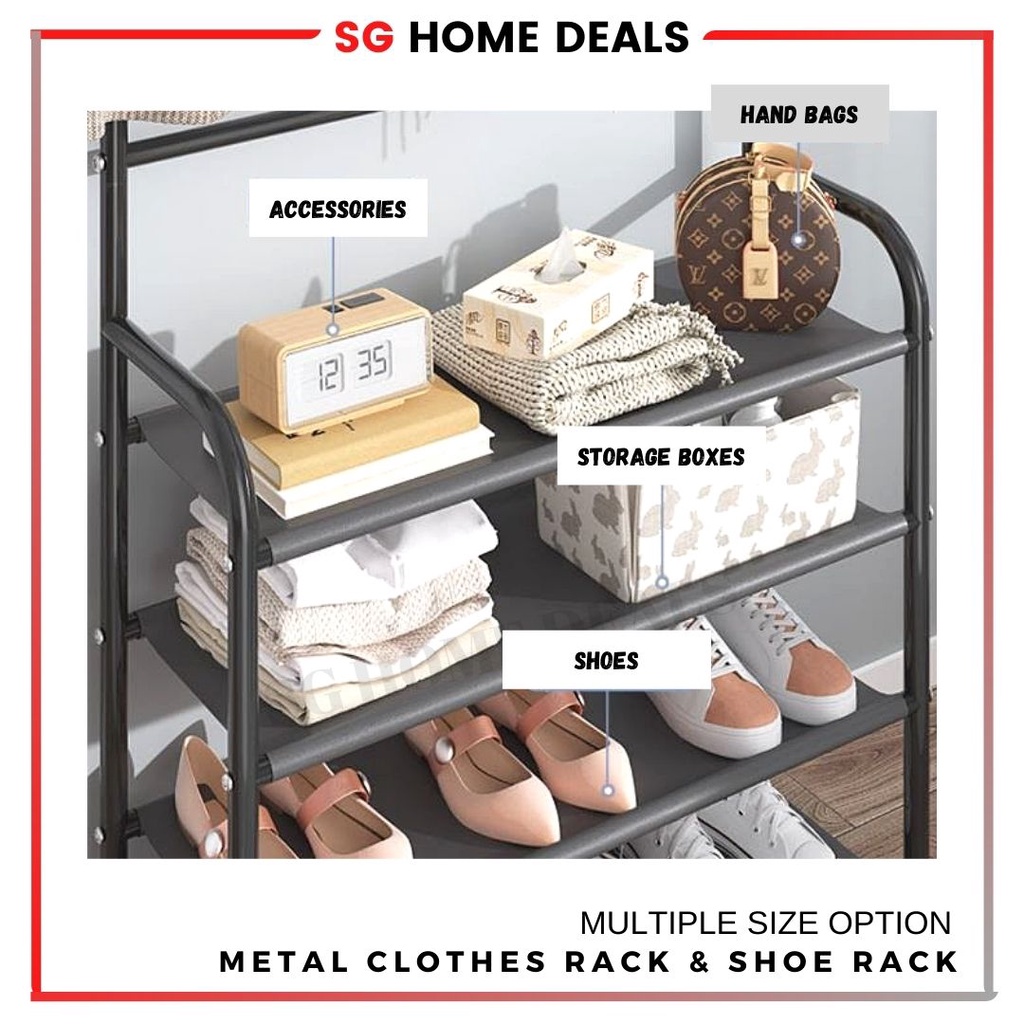 [SG STOCKS] XM 3-In-1 Multifunction Standing Clothes Rack/Versatile Portable Hat Jacket Clothes Bags Shoe Hanger Racking