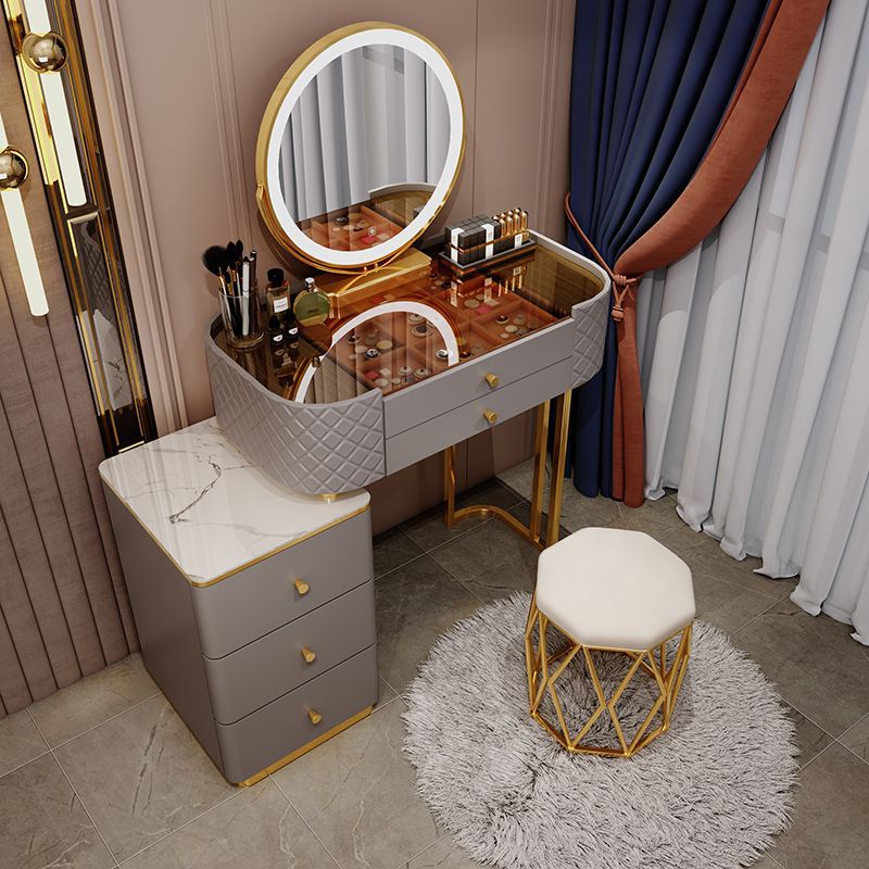 {SG Sales}Light Luxury Dressing Table Nordic Dressing Table Bedroom Makeup Table Small Apartment Storage Integrated Dresser with Led Light Stool Integrated Storage Cabinet