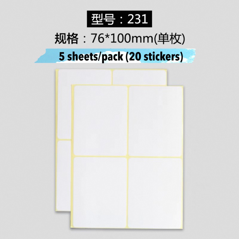 [SG Seller] 5 sheets White Blank Sticky Labels Self-Adhesive Stickers