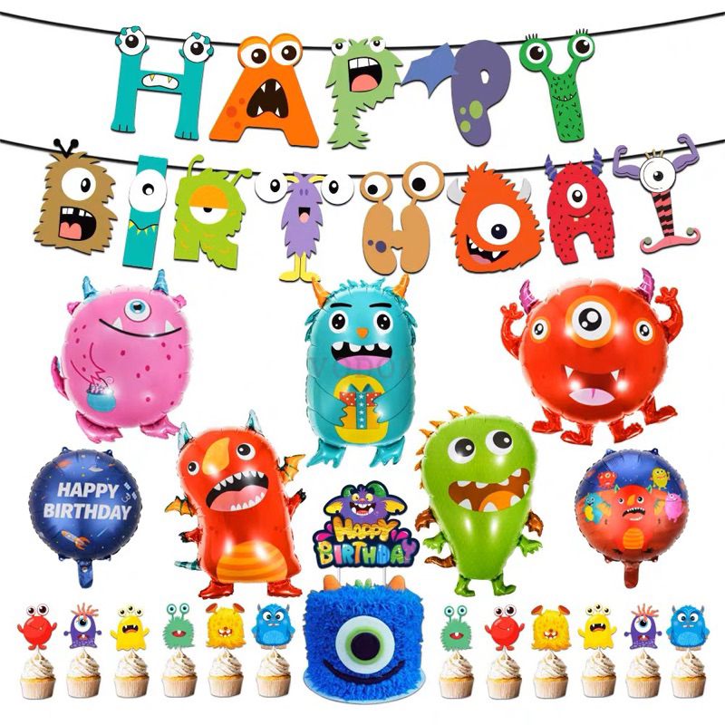 [SG Seller] Alien Theme Balloons Set Birthday Party Decoration Banner Balloon Cupcake Toppers Aliens Monsters