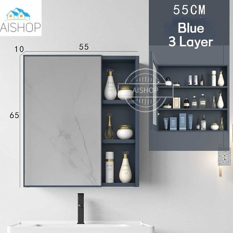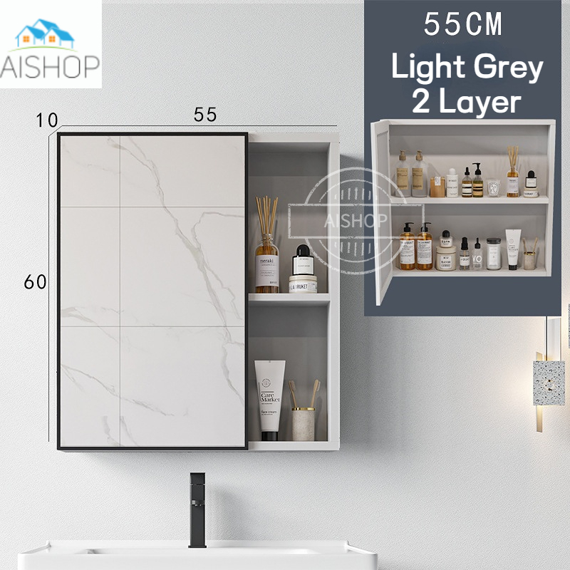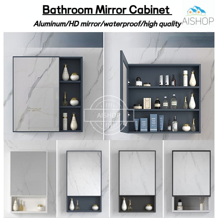 [SG Seller]Aluminum Alloy Bathroom Mirror Cabinet Wall Mounted Toilet Mirror Storage Box