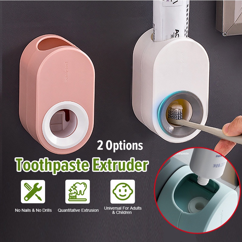 [SG Seller]Automatic Toothpaste Squeezer Dispenser Toothbrush Holder Wall Mounted Bathroom Push Automatic Set Wall