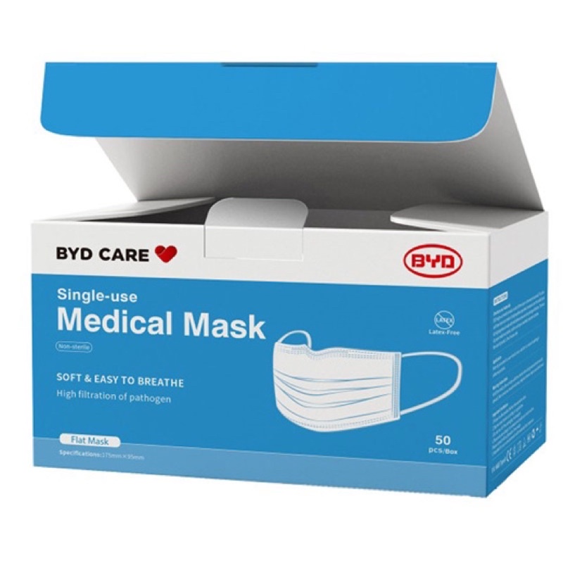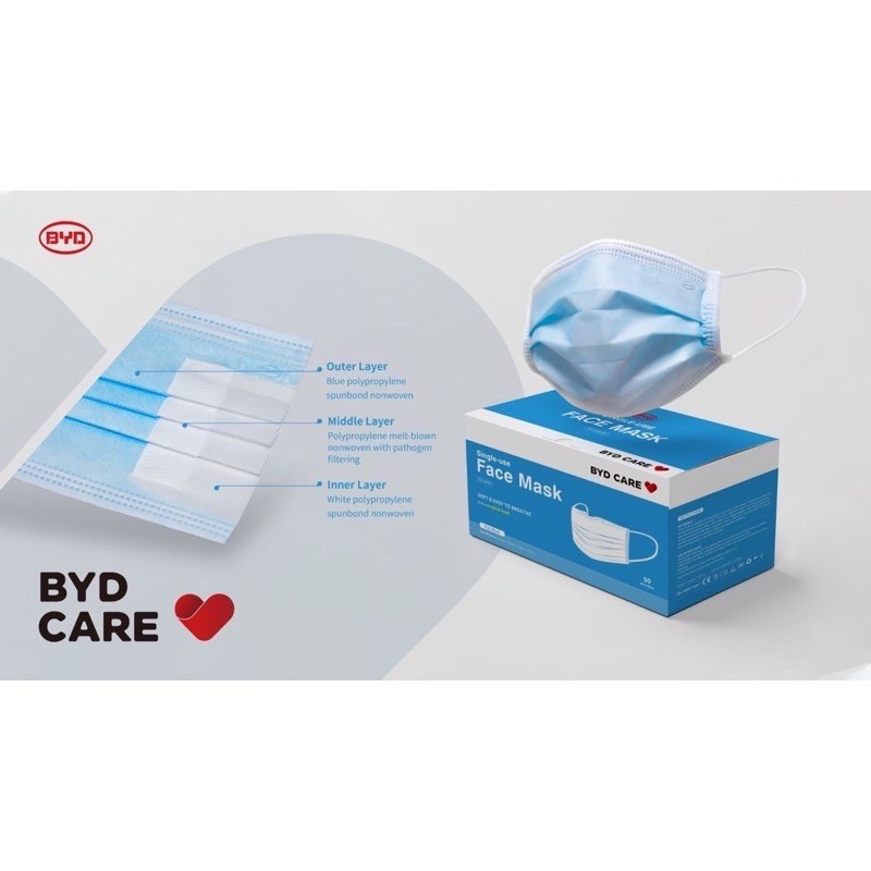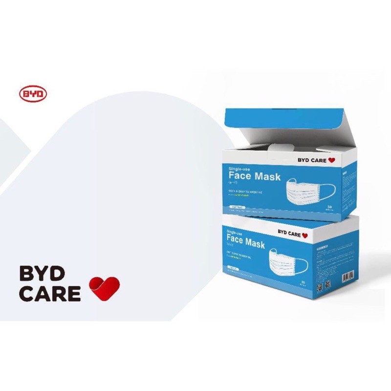 [SG Seller] BYD Care Mask Single use 3 Ply Face Mask 50 pcs Disposable Surgical Adult Made by BYD Electronics
