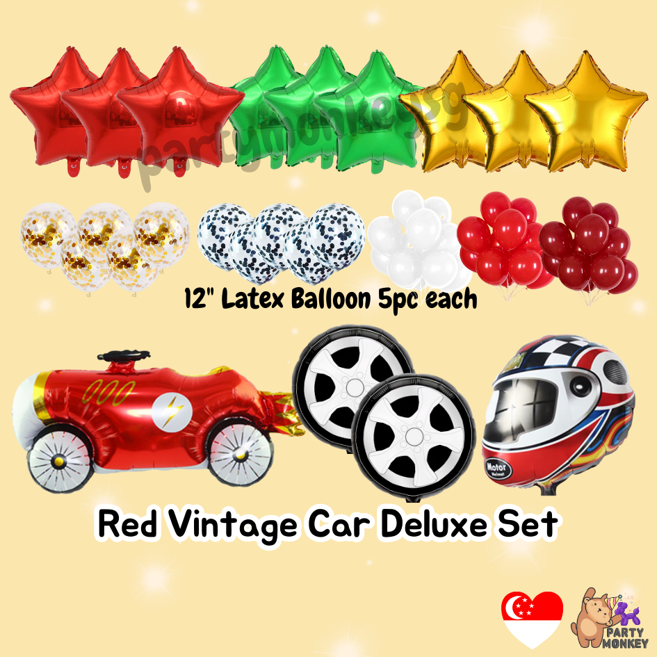 [SG Seller] Cars Theme Balloons Wheel Checkered Balloon Ballon Vintage Car Party Decoration Kids Arch Banner Backdrop