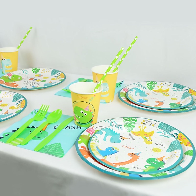 [SG Seller] Dinosaur Disposable Tableware for Birthday Party Supplies Plates Cups Forks & Spoons Parties Dino