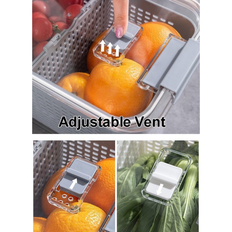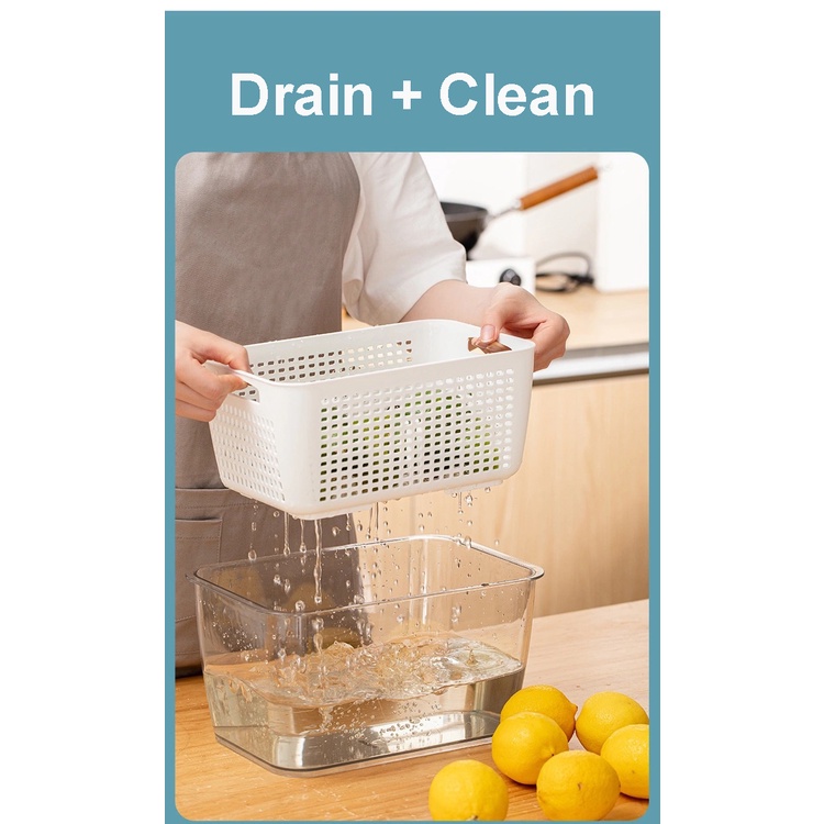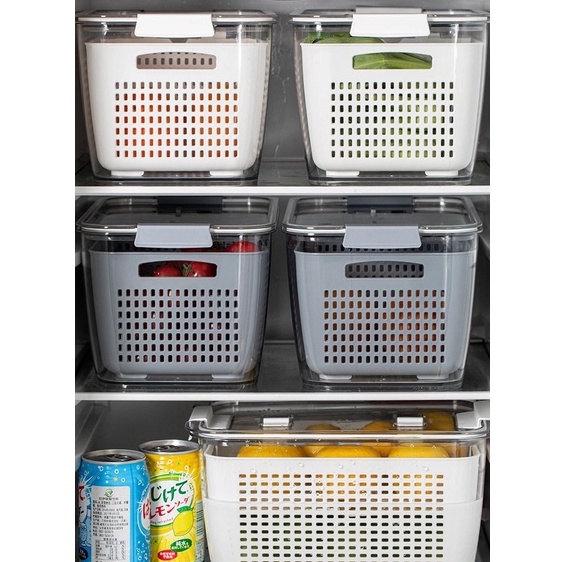 [SG Seller] Double-Layer Plastic Fresh-Keeping Box / Drain Basket / Adjustable Partition / Refrigerator Storage Box