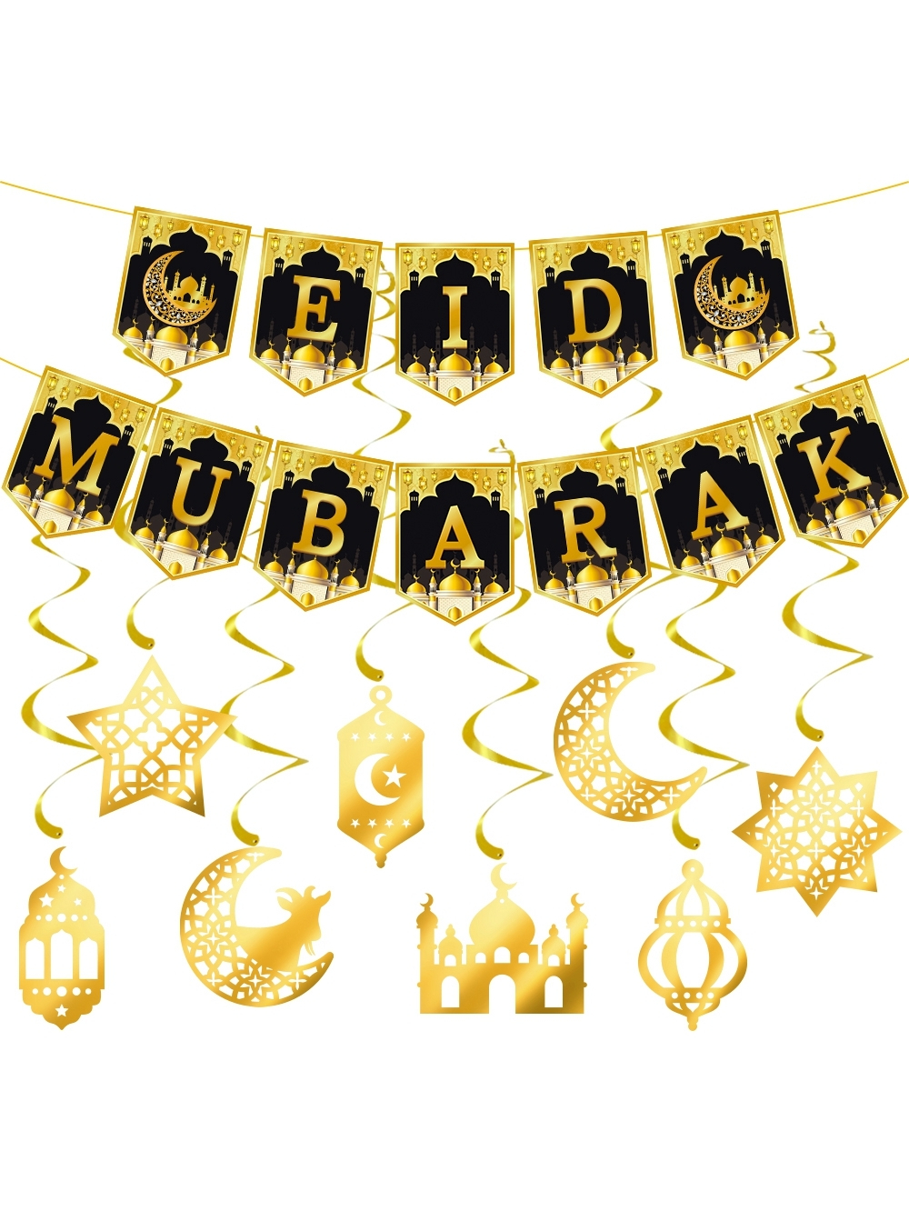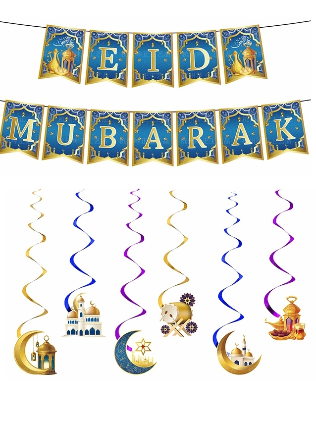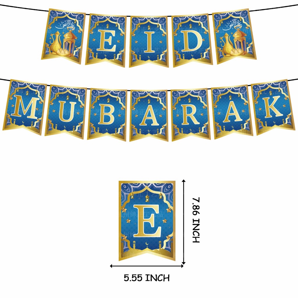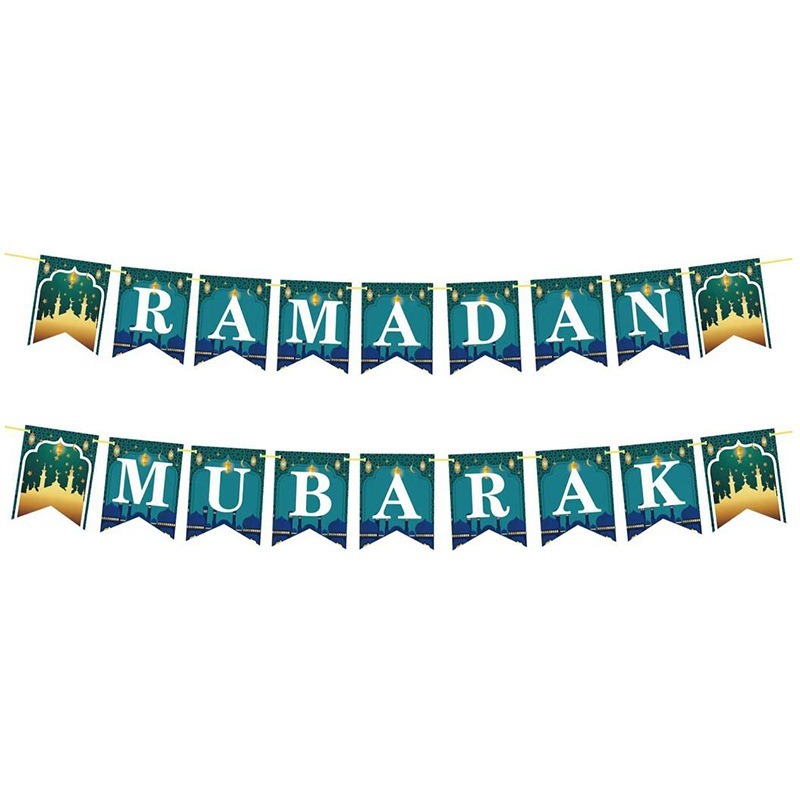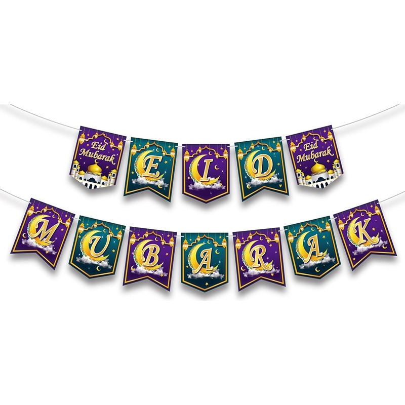 Ramadan Kareem Eid Mubarak Selamat Hari Raya Banner Bunting Ramadan Mubarak Banner Hanging Decorations