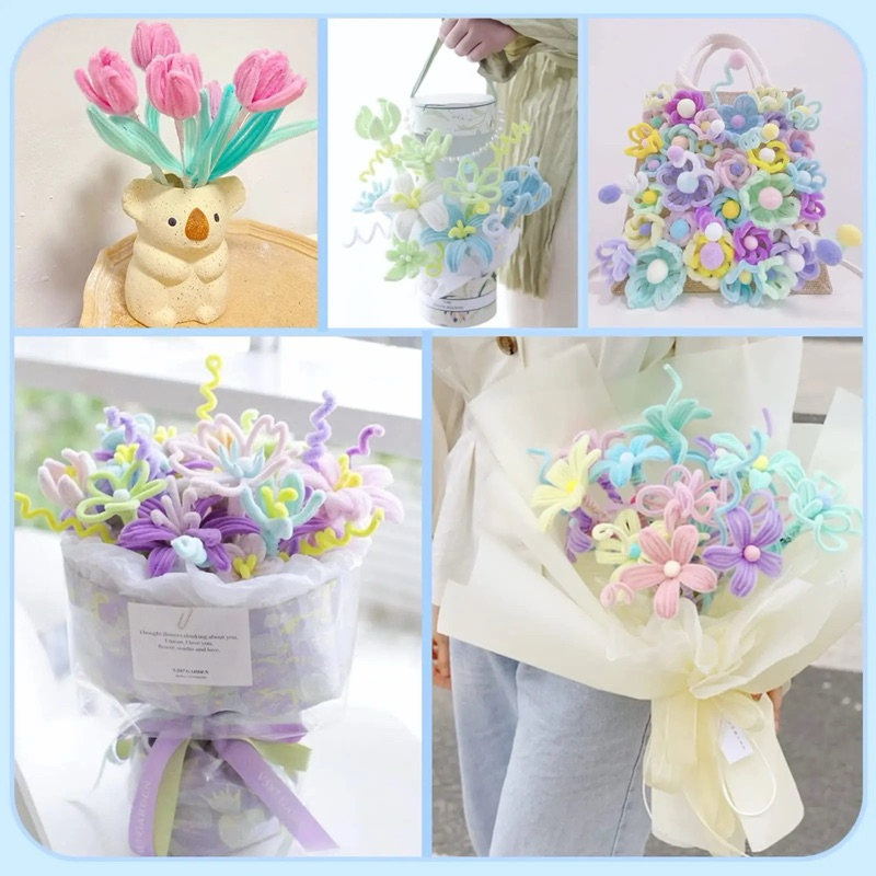 [SG Seller] Fluffy Colourful Chenille Stem 20Pcs Pipe Cleaners Stick Kids School DIY Activities Hobby Wire Craft Stamen
