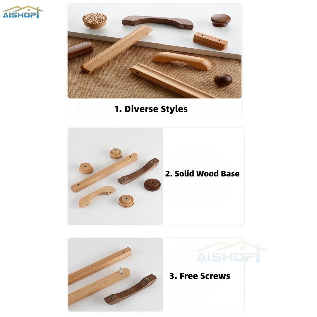 [SG Seller]Japanese Style Log Drawer Handle Oak Walnut Furniture Handle Cabinet Door Wooden Handle Cabinet Wardrobe Door