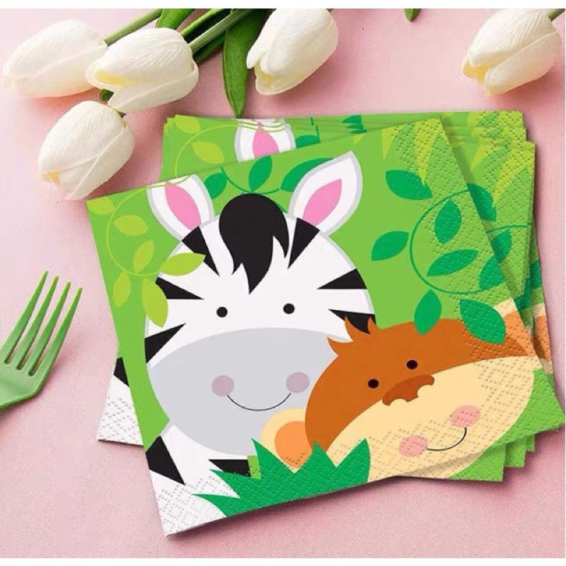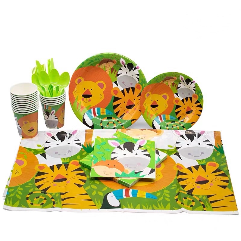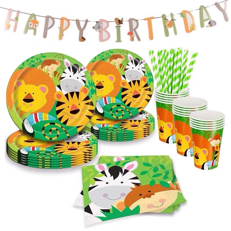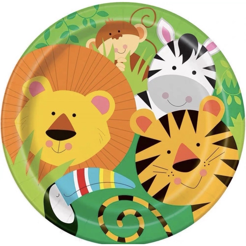 [SG Seller] Jungle Safari Wild Animal Birthday Party Plates Backdrop Lion Tiger Zebra Monkey
