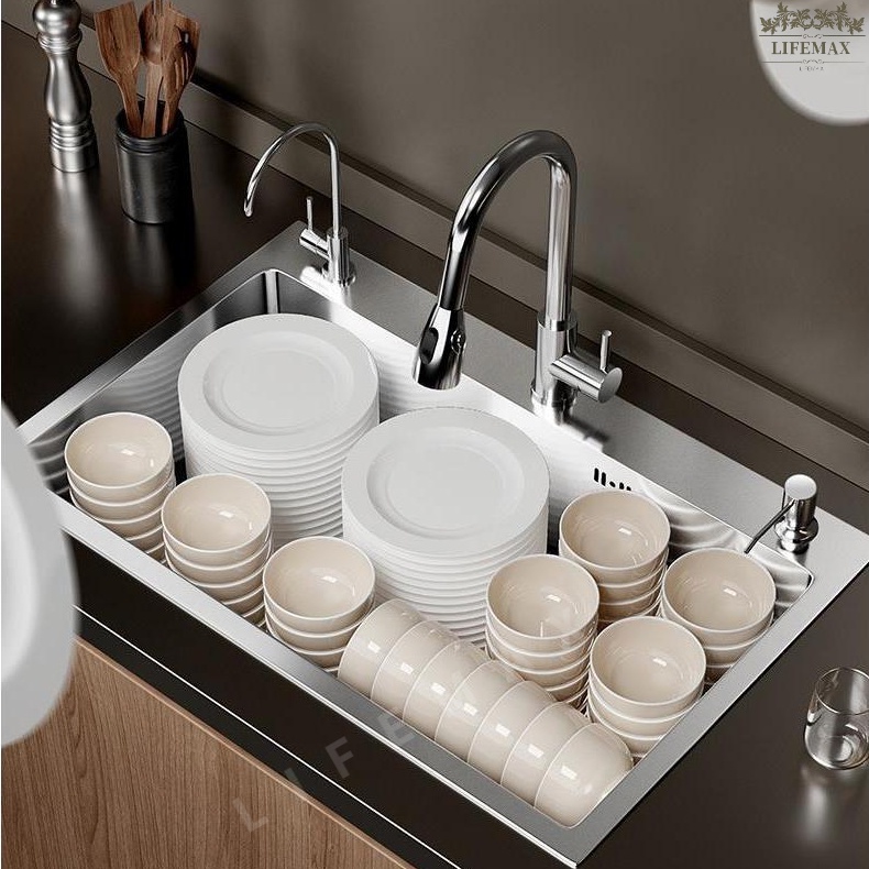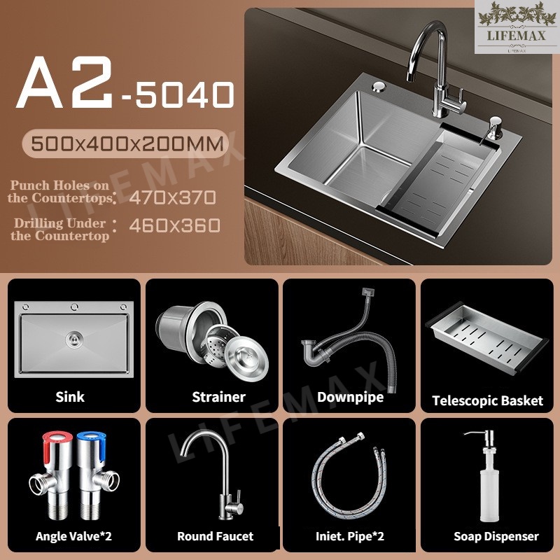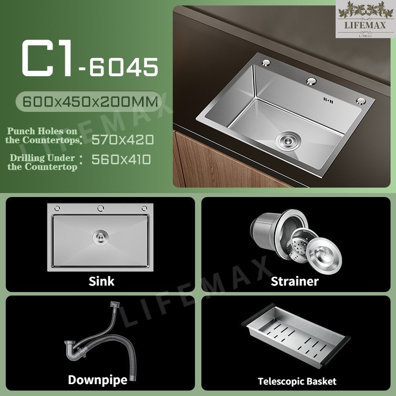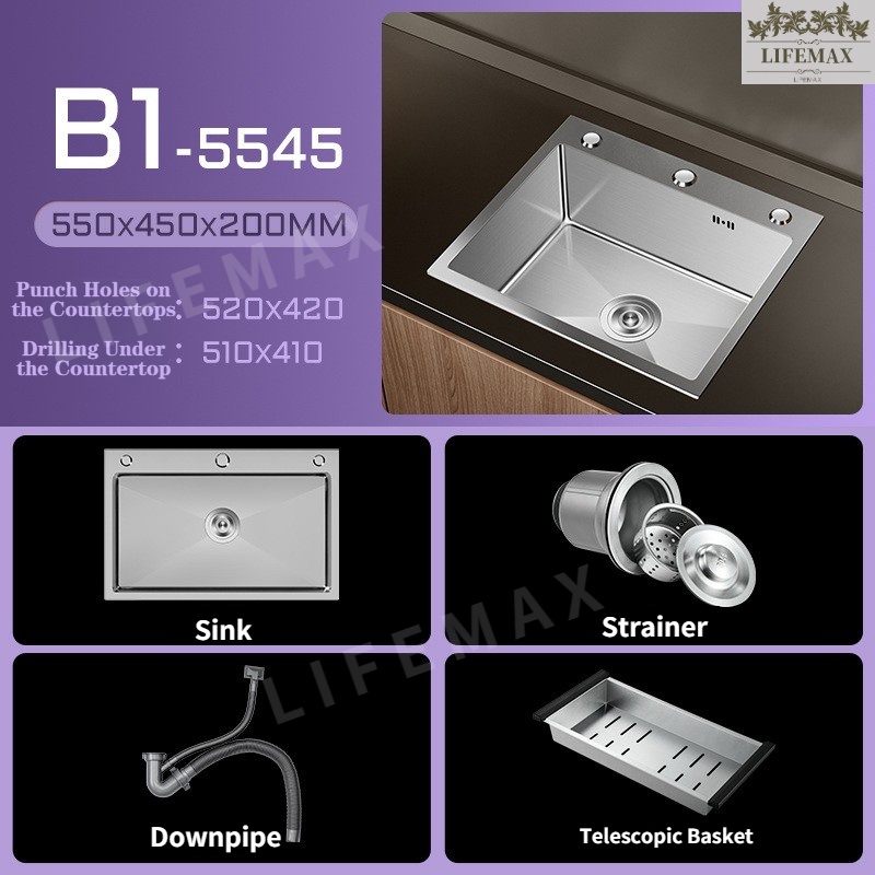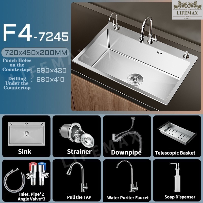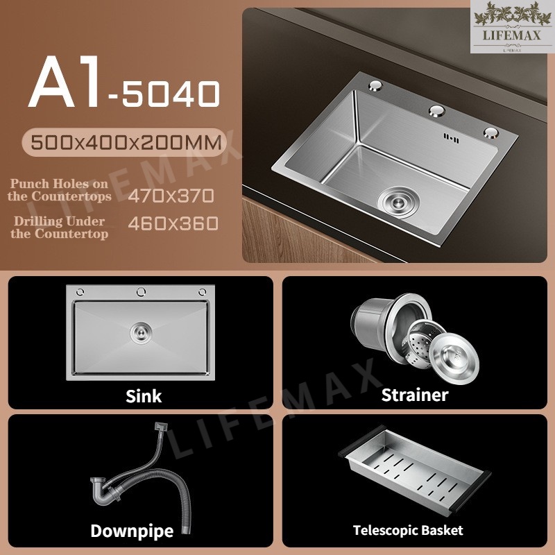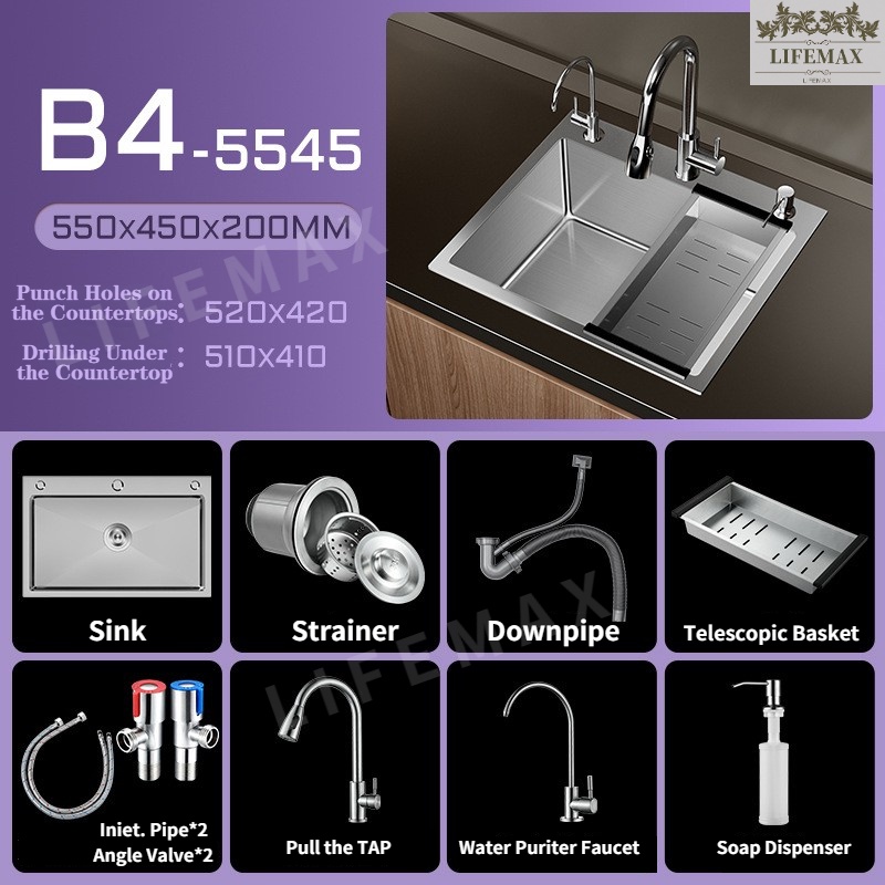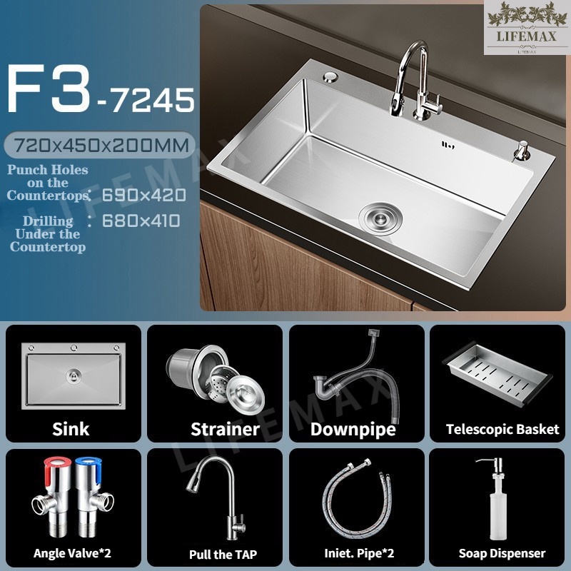 [SG Seller]Kitchen Nano Sink Single Sink 304 Stainless Steel Household Sink With Kitchen Faucet Drain Accessories