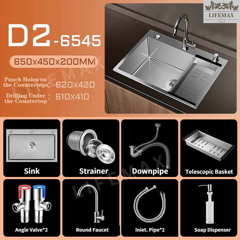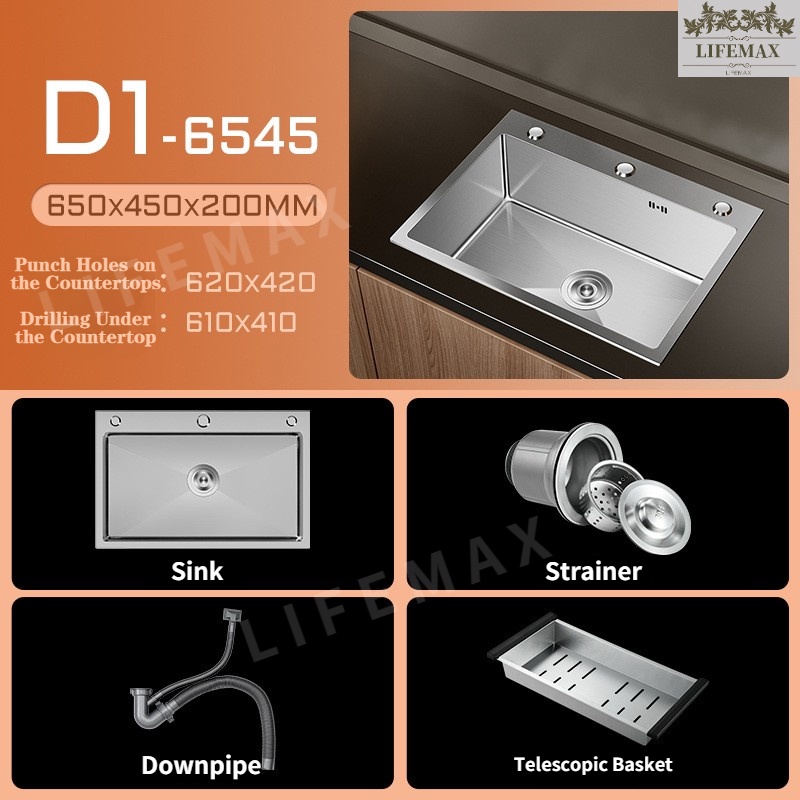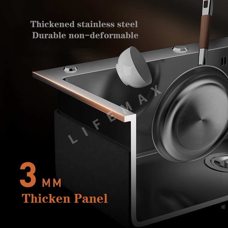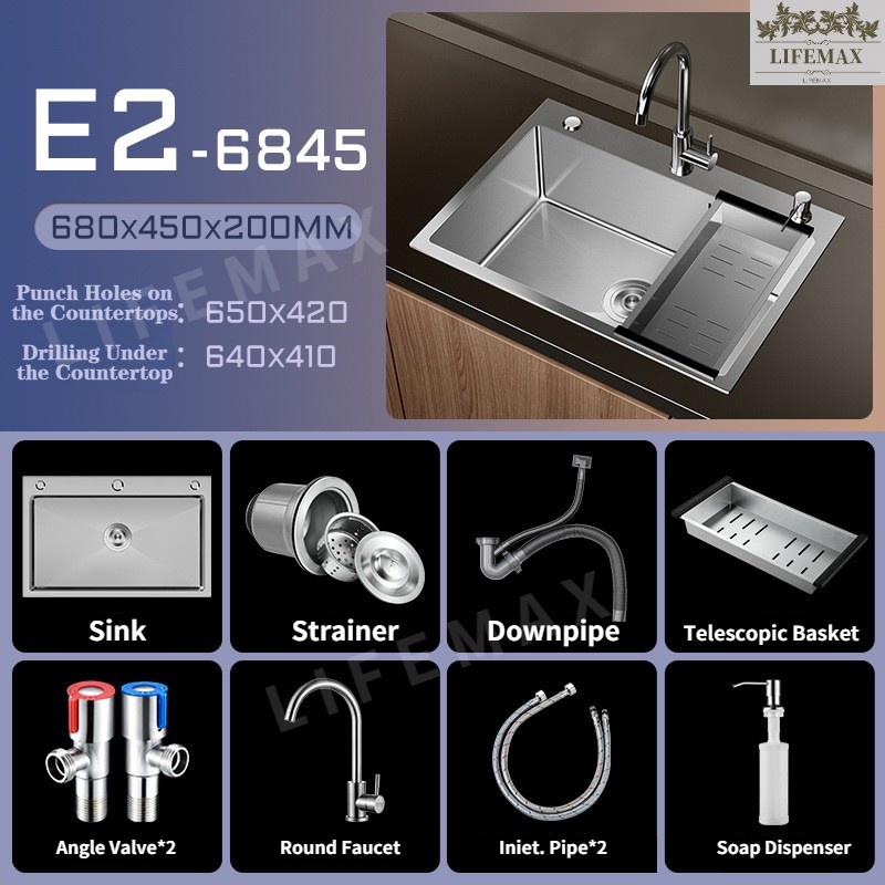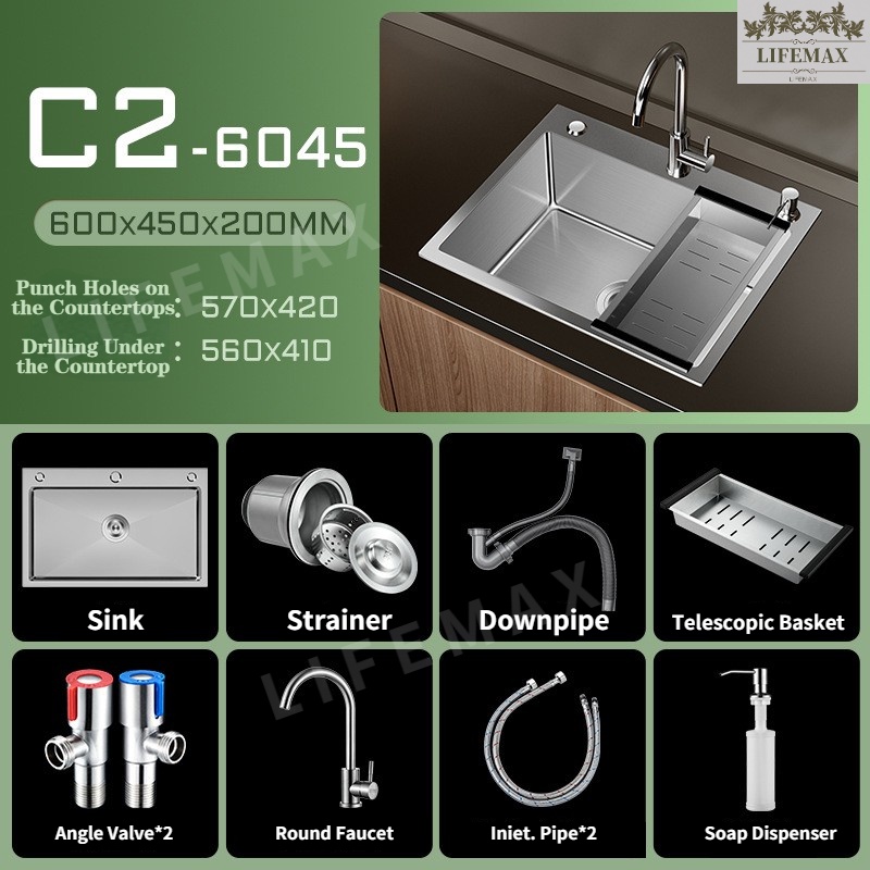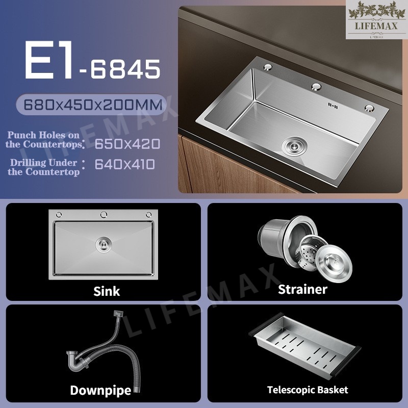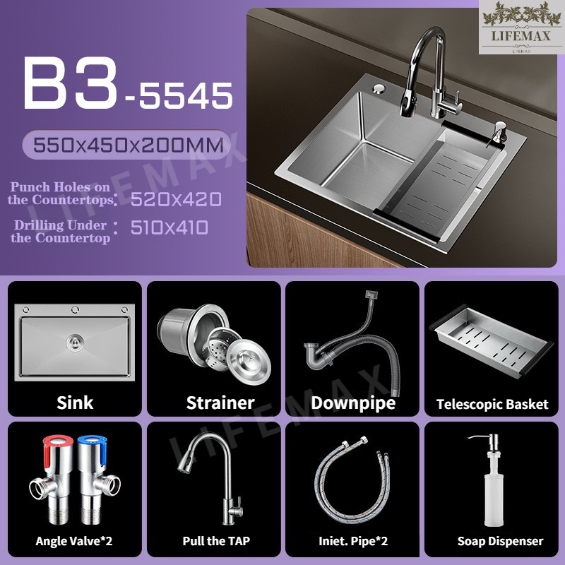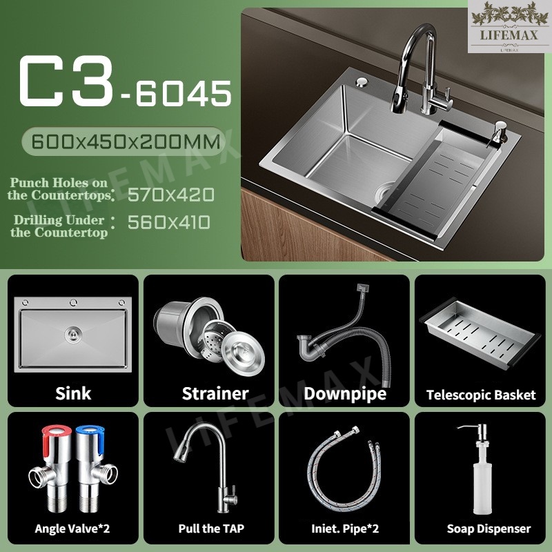 [SG Seller]Kitchen Nano Sink Single Sink 304 Stainless Steel Household Sink With Kitchen Faucet Drain Accessories