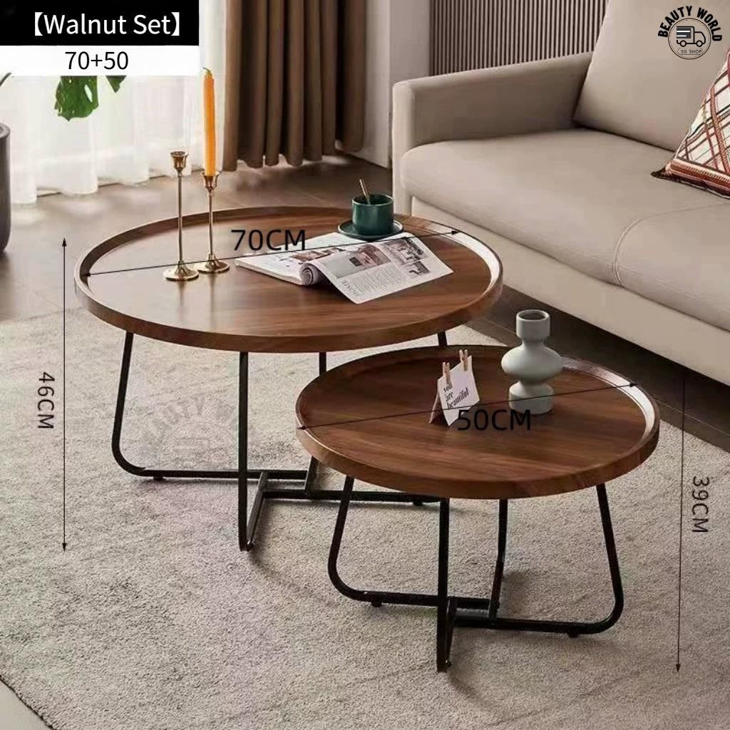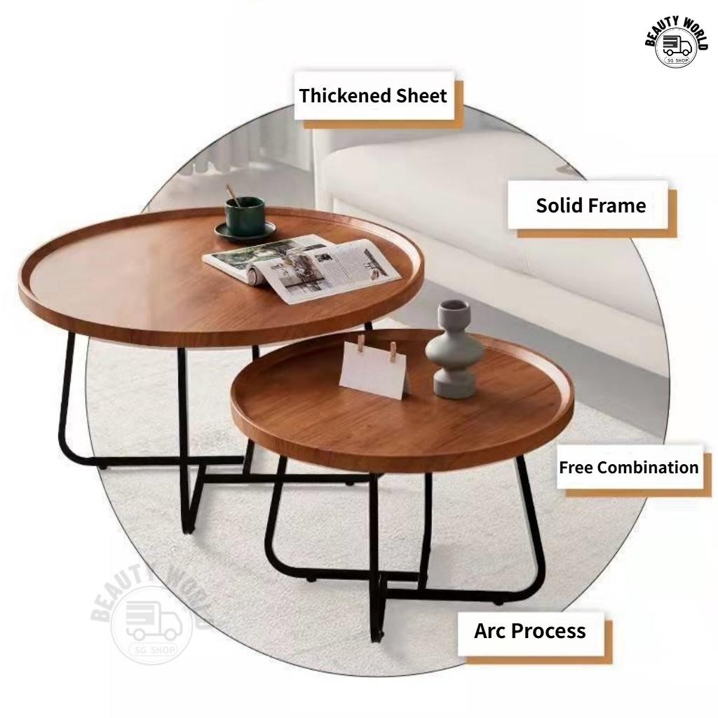 [SG Seller]Modern Living Room Home Round Coffee Table Round Wooden Coffee Table Modern Style Living Room Sturdy Tea Tabl