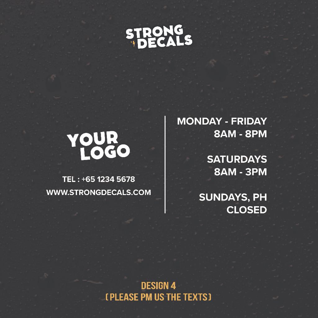 [SG Seller] Opening Hours Vinyl for Cafes, Clinics, Offices, Glass Door Sticker