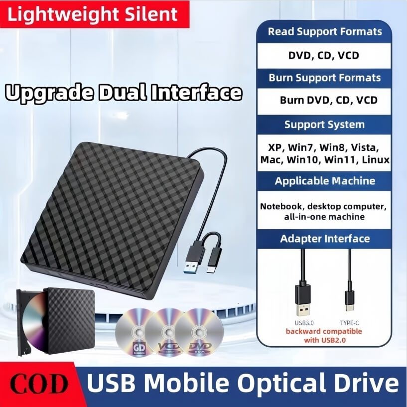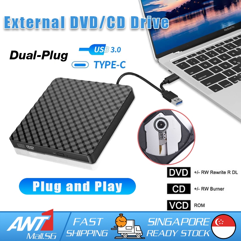 [SG Seller] Portable External CD DVD RW Drive Burner Writer Slim USB & Type-C DVD Player Optical Drive CD-RW Driver