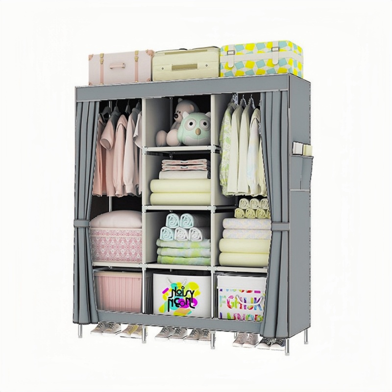 [SG Seller] Simple Wardrobe Assembly Storage Wardrobe Portable Closet Organizer Household Bedroom Rental Room Simple Storage Cabinet Gray