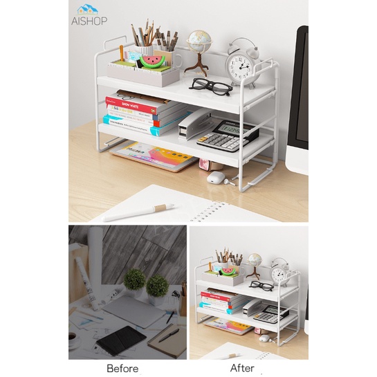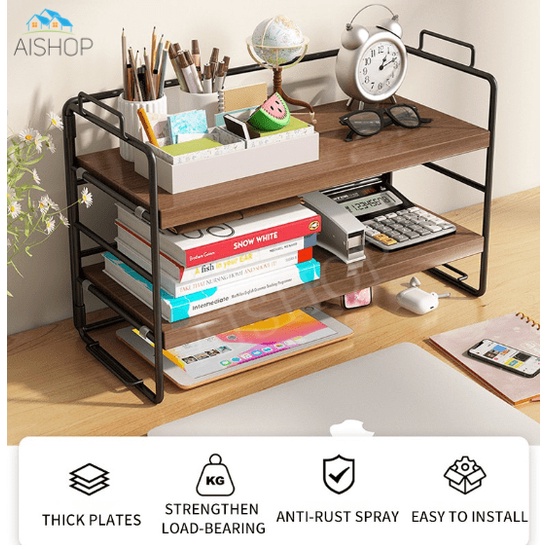 [SG Seller]Single/Double Layer Desktop Shelves Home Office Desk Bookshelf Organizer Desktop Organizer