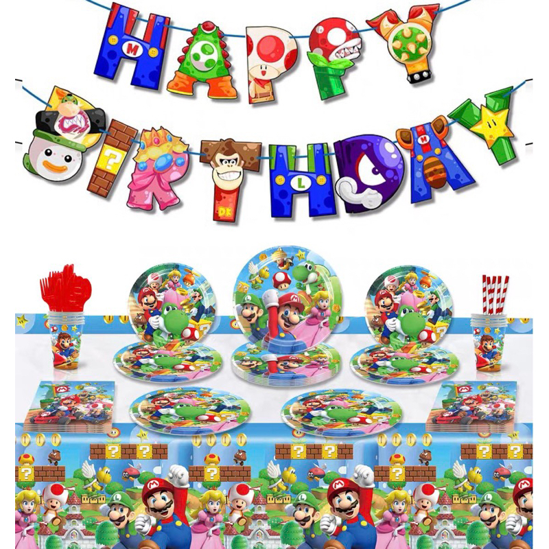 [SG Seller] Super Mario Luigi Toad Peach Happy Birthday Party Celebration Balloons Photography Cartoon Plates Tableware