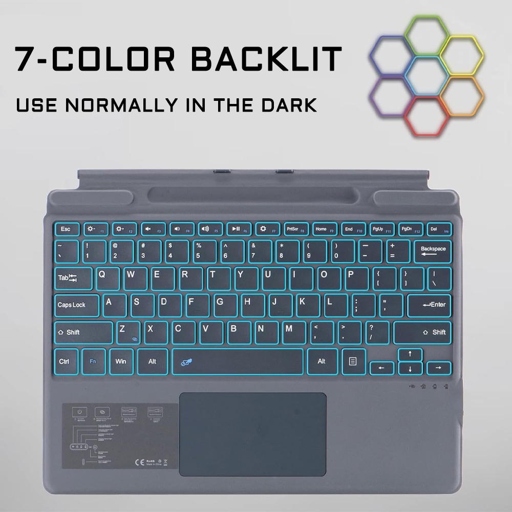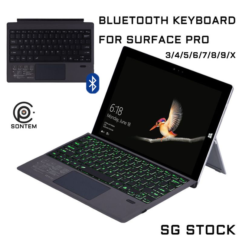 {SG Seller} Surface Pro Keyboard bluetooth with Touchpad 7-Color Backlight Keyboard Compatible with Surface Pro 3-7