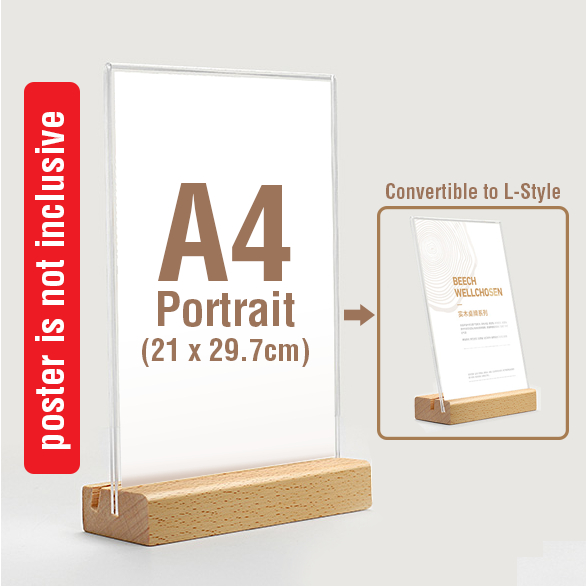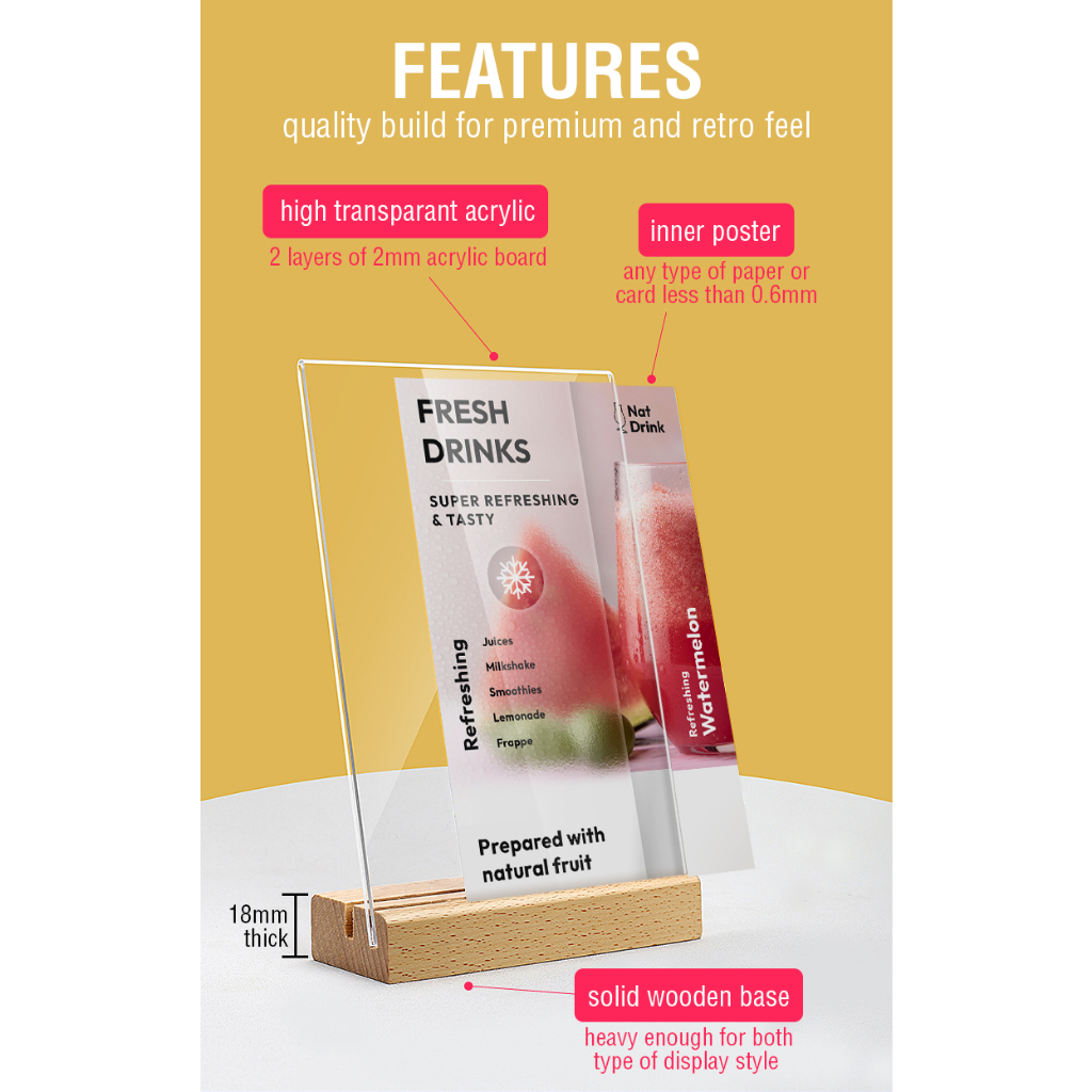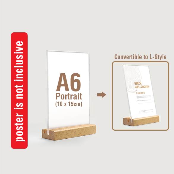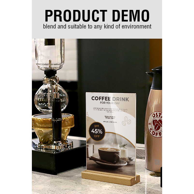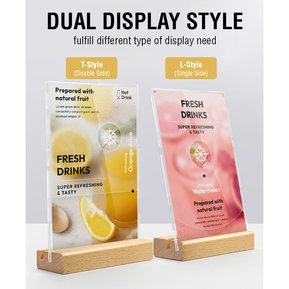 <SG Seller> Wooden T-shape Acrylic Stand | Table Poster Stand | Counter, Cafe Standee