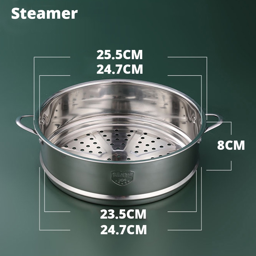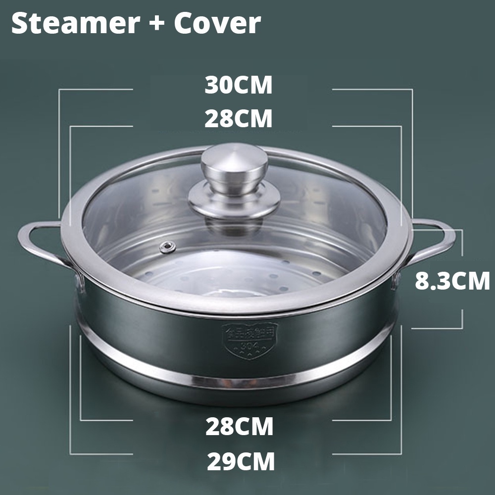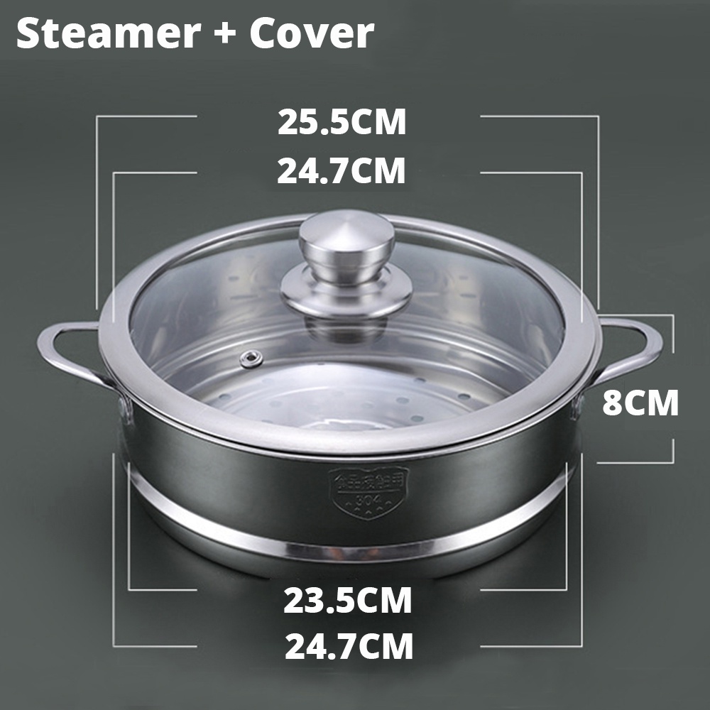 {SG} Stainless Steel Food Steamer Basket with Glass Lid & Handles 20cm 24cm 28cm Steaming Tray Pot Cooker