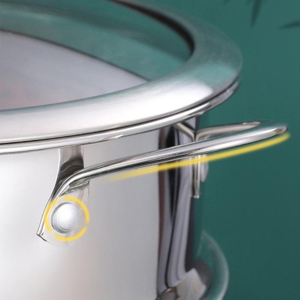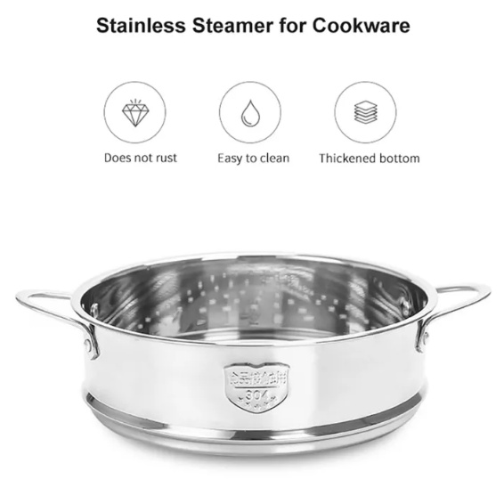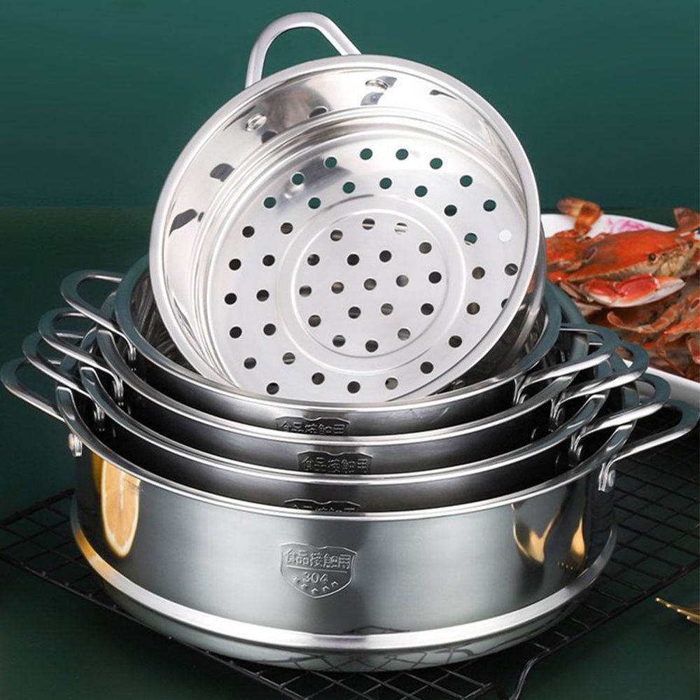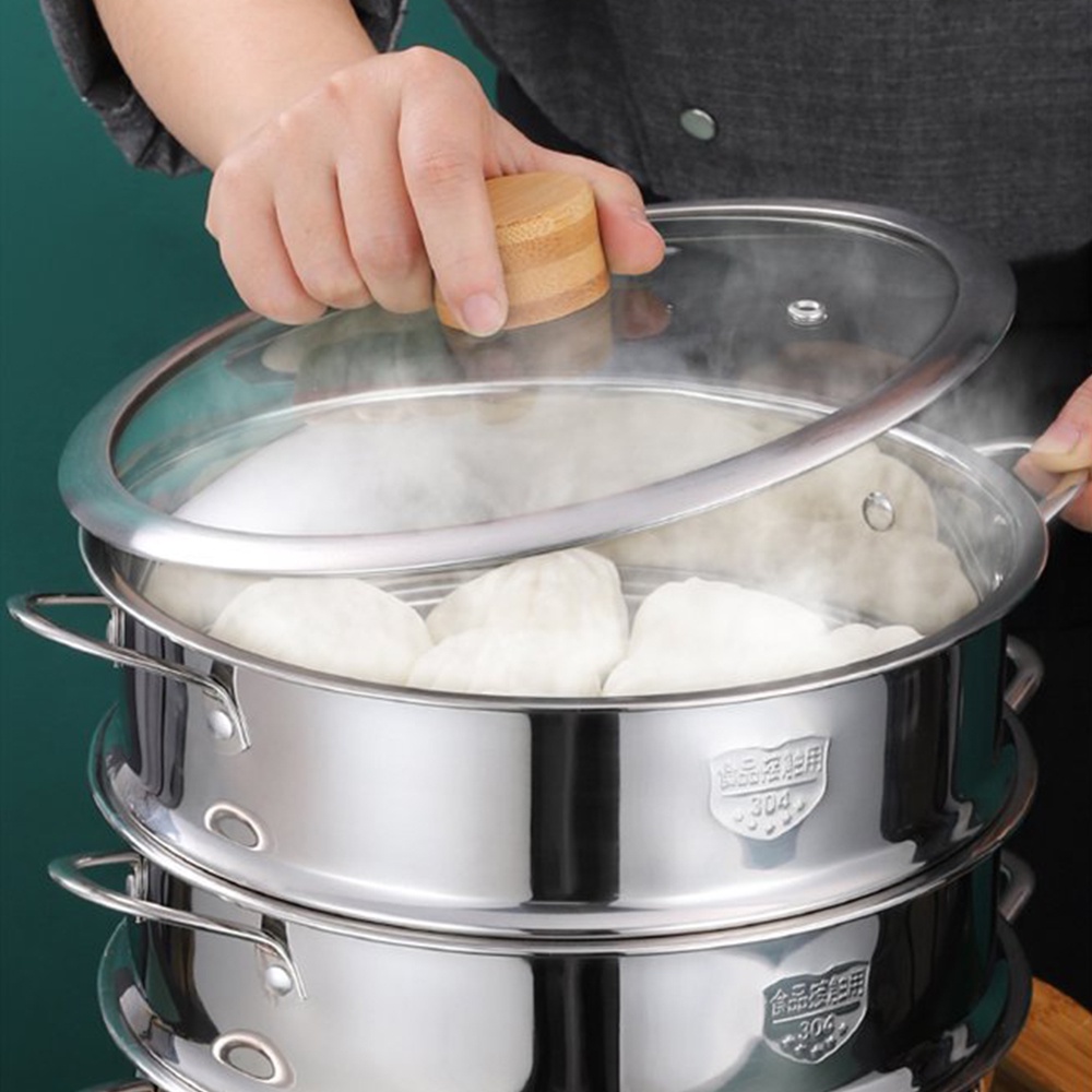 {SG} Stainless Steel Food Steamer Basket with Glass Lid & Handles 20cm 24cm 28cm Steaming Tray Pot Cooker