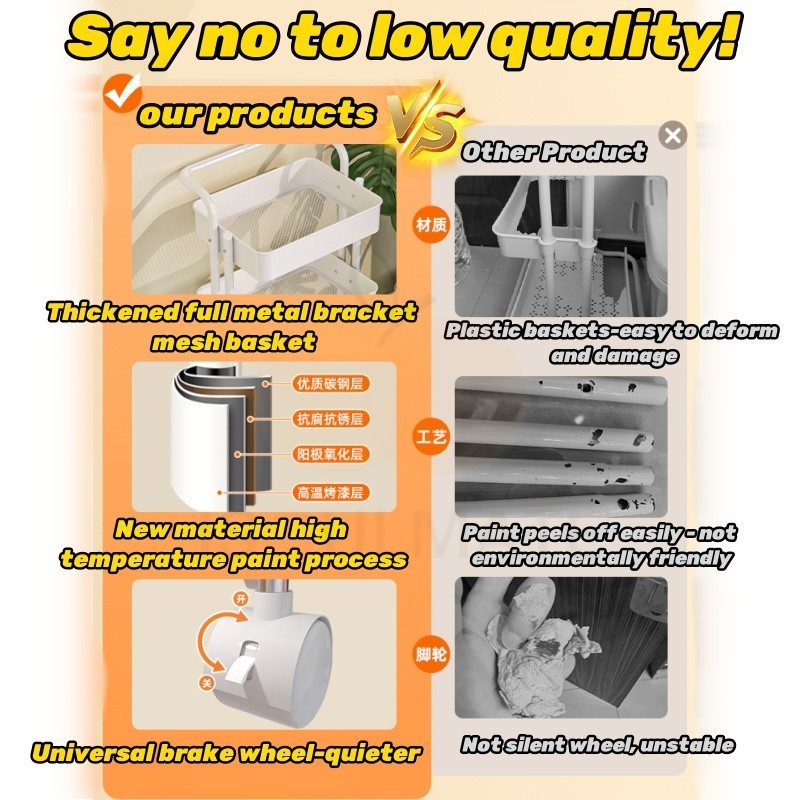 [SG Stock]3 Tier Trolley Rack Trolly Storage Racks Office Kitchen Shelves Storage Shelf Home Kitchen Rack Book Shelving Toys