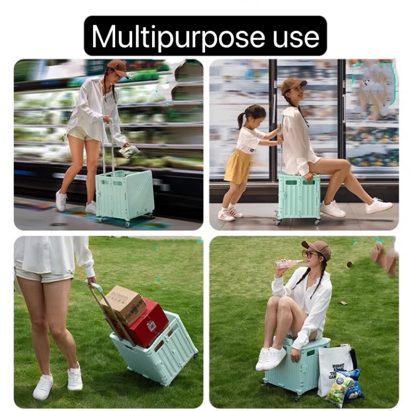 [SG Stock]65L Shopping Cart Trolley Large Foldable Shopping Foldable Trolley with 360 Wheel Collapsible Storage Box