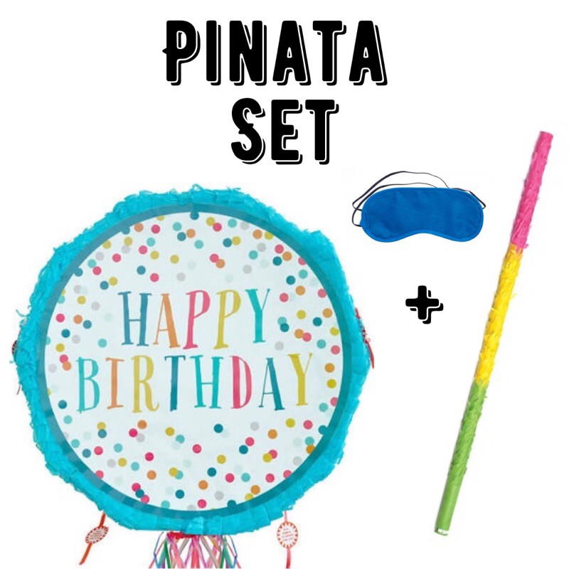 [SG Stock] Blue Confetti Pinata Party Game Fill Up Sweets Pinata Set Stick Party Games