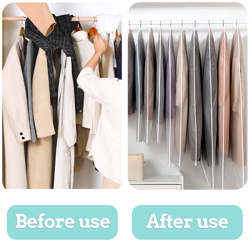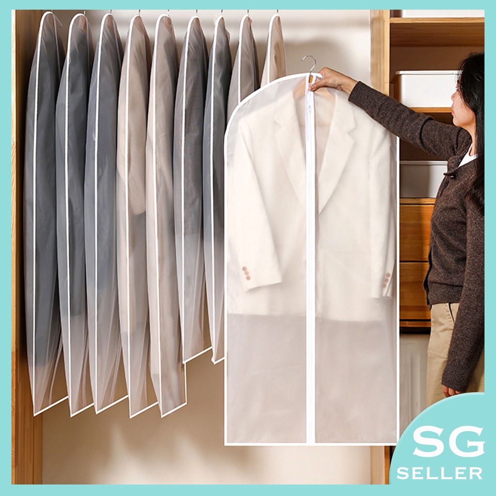[SG Stock] Clothes Cover Dust Cover Garment Bag Suit Overcoat Dust proof Plastic Cover For Storage