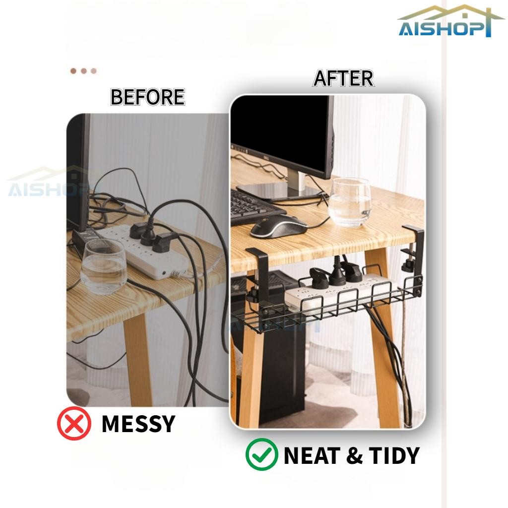 [SG Stock]Desk Cable Management Organizer Basket Tray Box Home Office Table Organiser Wire Plug Cord Management Rack Sto