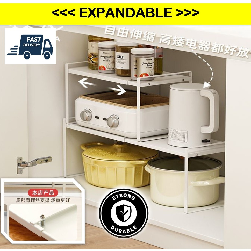 Ⓜ️SG SELLERⓂ️ Expandable Organizer Rack Cabinet Tiered Shelves Kitchen Shelf Kitchen Rack Desktop Rack Space Saver Rack