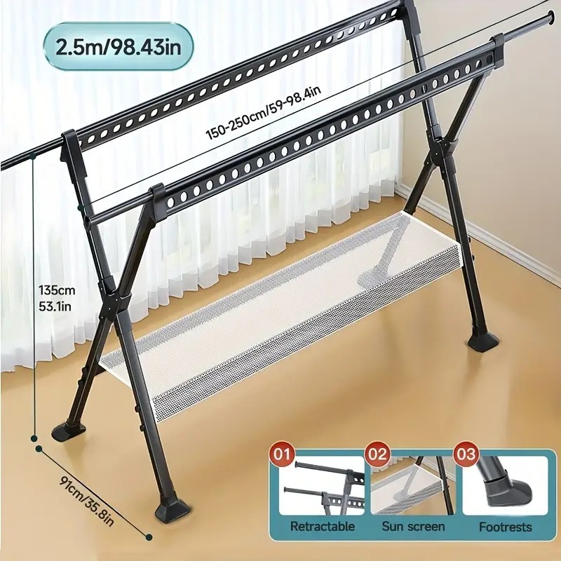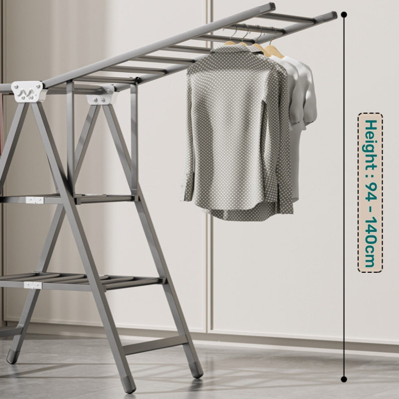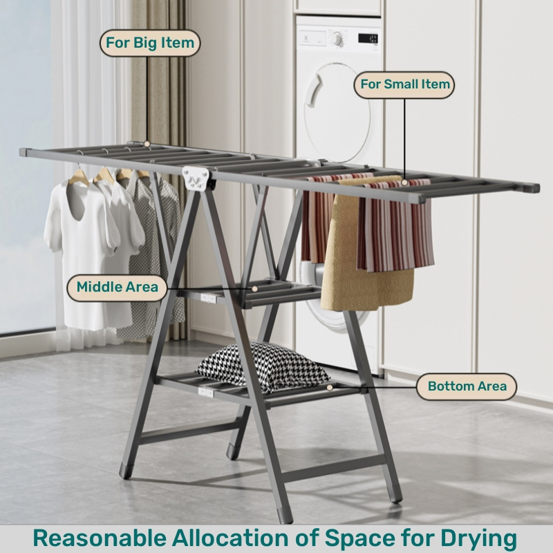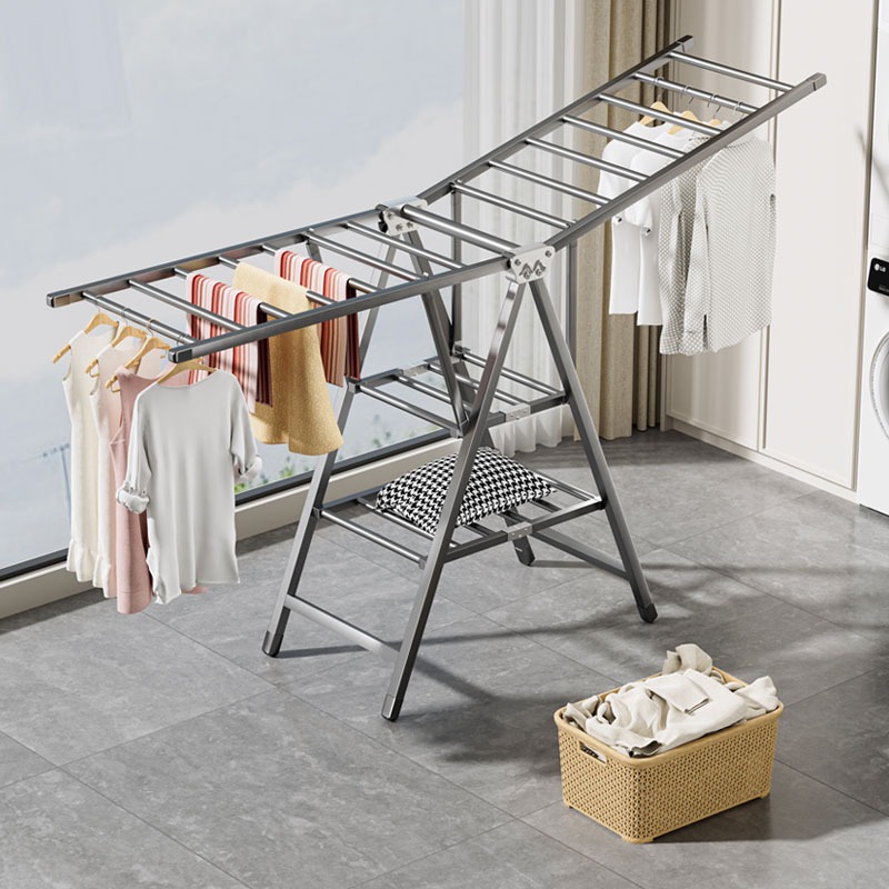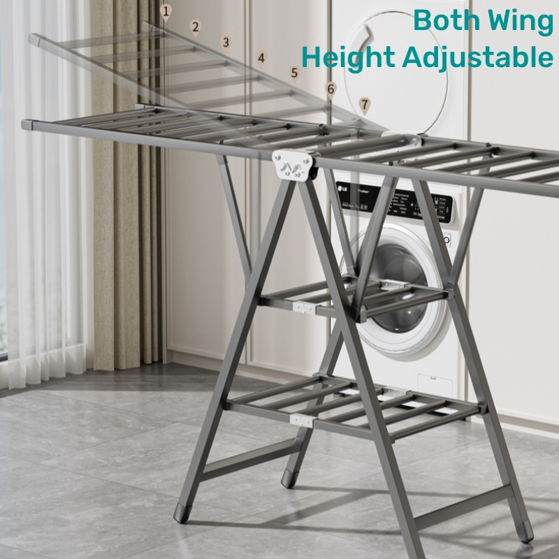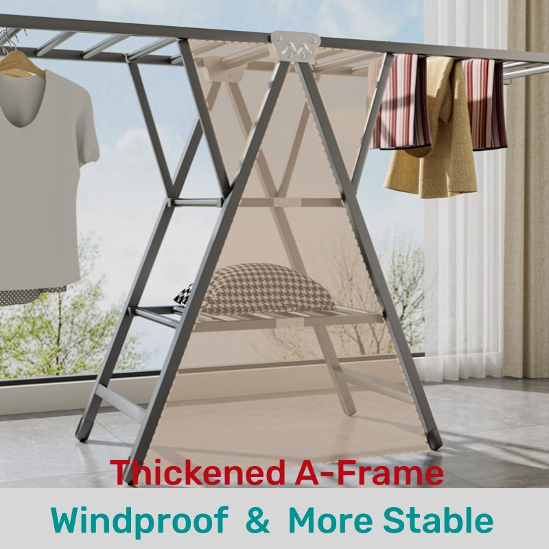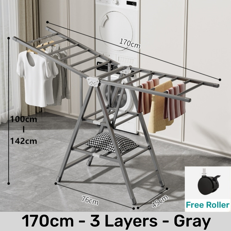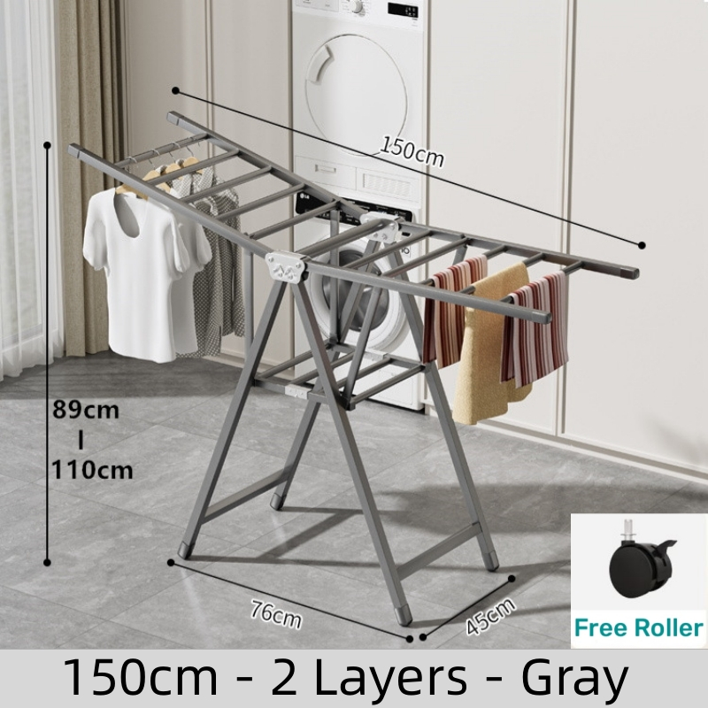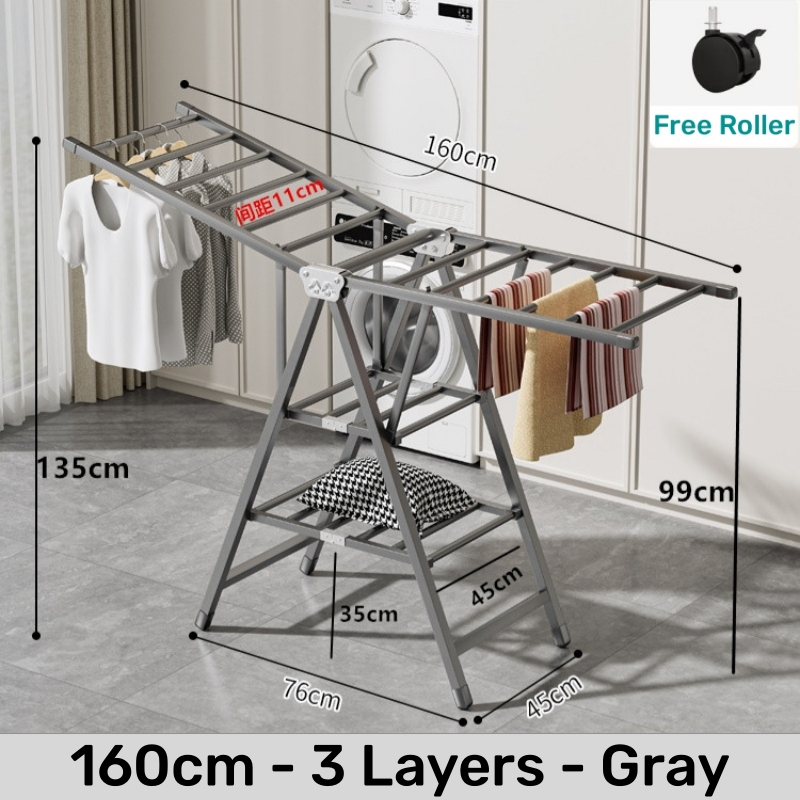 [SG Stock]Foldable Clothes Drying Rack Multifunctional Laundry Rack With Wheel Stainless Steel Thickened Carbon Steel