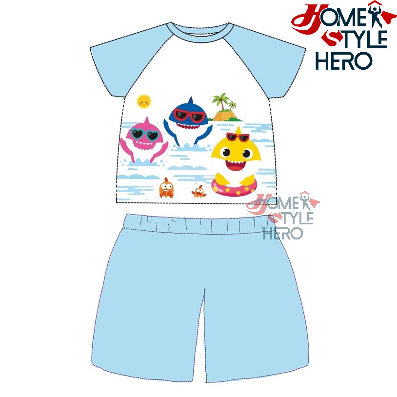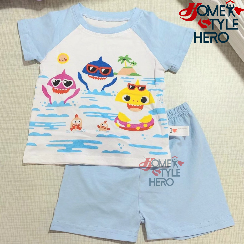 [SG Stock] Kids Baby Shark Cotton Pyjamas Set Cartoon Short Sleeve Summer Sleep Loungewear Cute Baby Toddler