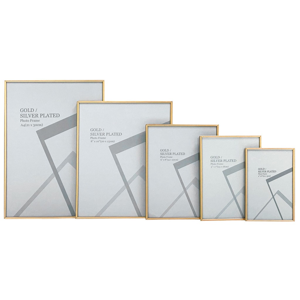 [SG Stock] Matte Gold Frame | Champagne Gold Frame | Glass panel | 4R - A4 | Metal Photo Frames