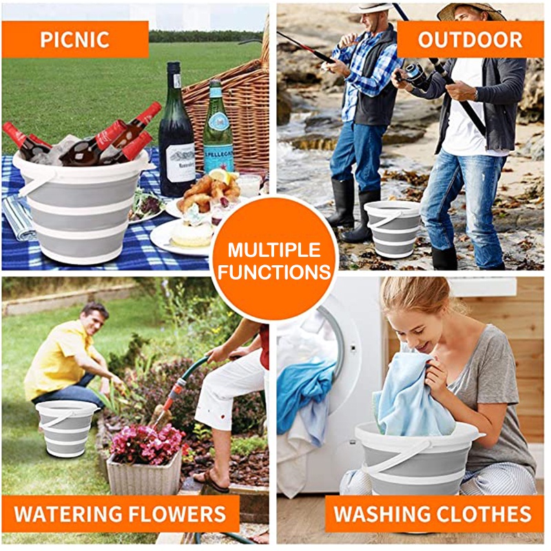 [SG Stock] Premium Collapsible Bucket Silicone Folding Bucket Foldable Wash Basin Travel Tool Car Fishing Pail