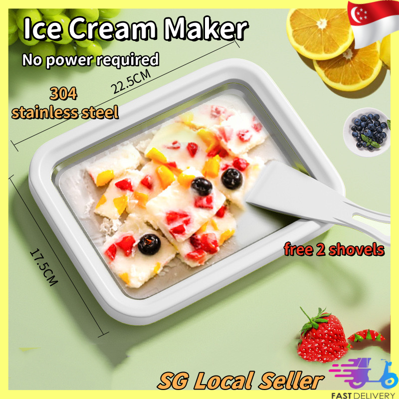 [SG Stock]Rolled Ice Cream Maker Plates Sorbet Maker Fried Yogurt Machine Freeze Ice Cream Maker Tray/free 2 shovels