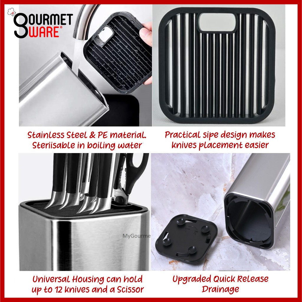 [SG Stock] Stainless Steel Kitchen Knife Block | Knife Rack l Universal Slot Space Saving Knife Holder | Knives Storage