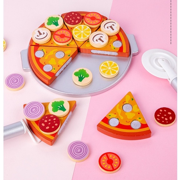 [SG Stock] Wooden Toy Pizza Oven Playset Kitchen Pretend Play Toy Food Roleplay Birthday Christmas Gift Set