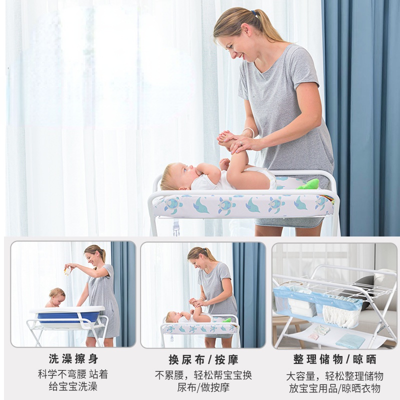 [SG Stocks]Baby Bathinette Folding Changing Table Baby Diaper Station with Bath Tub Unit, Portable Children Baby Dresser Unit Infant Nursery Trays Storage