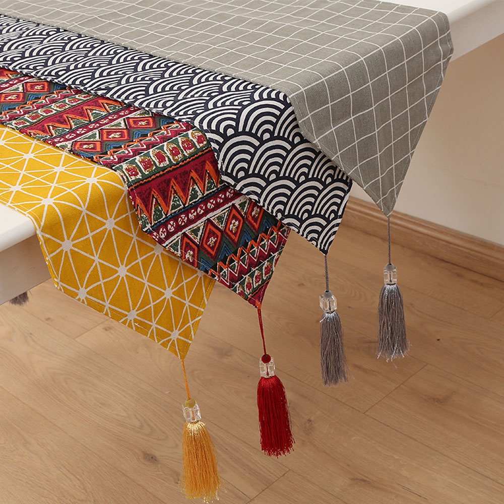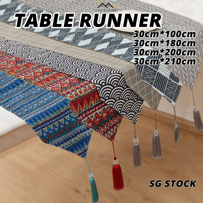 {SG} 30x200cm Table Runner with Tassel Cotton Linen Table Runner for Dining Table Linen Cloth for Coffee Table Flag